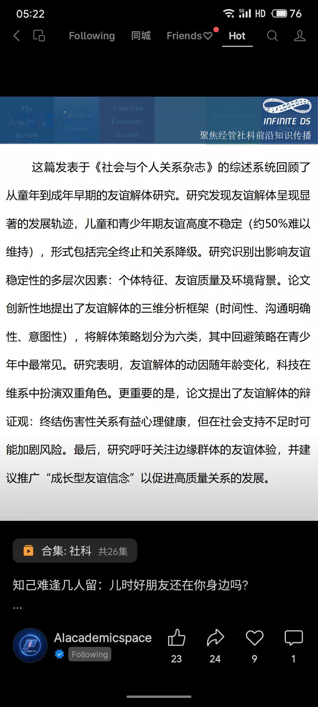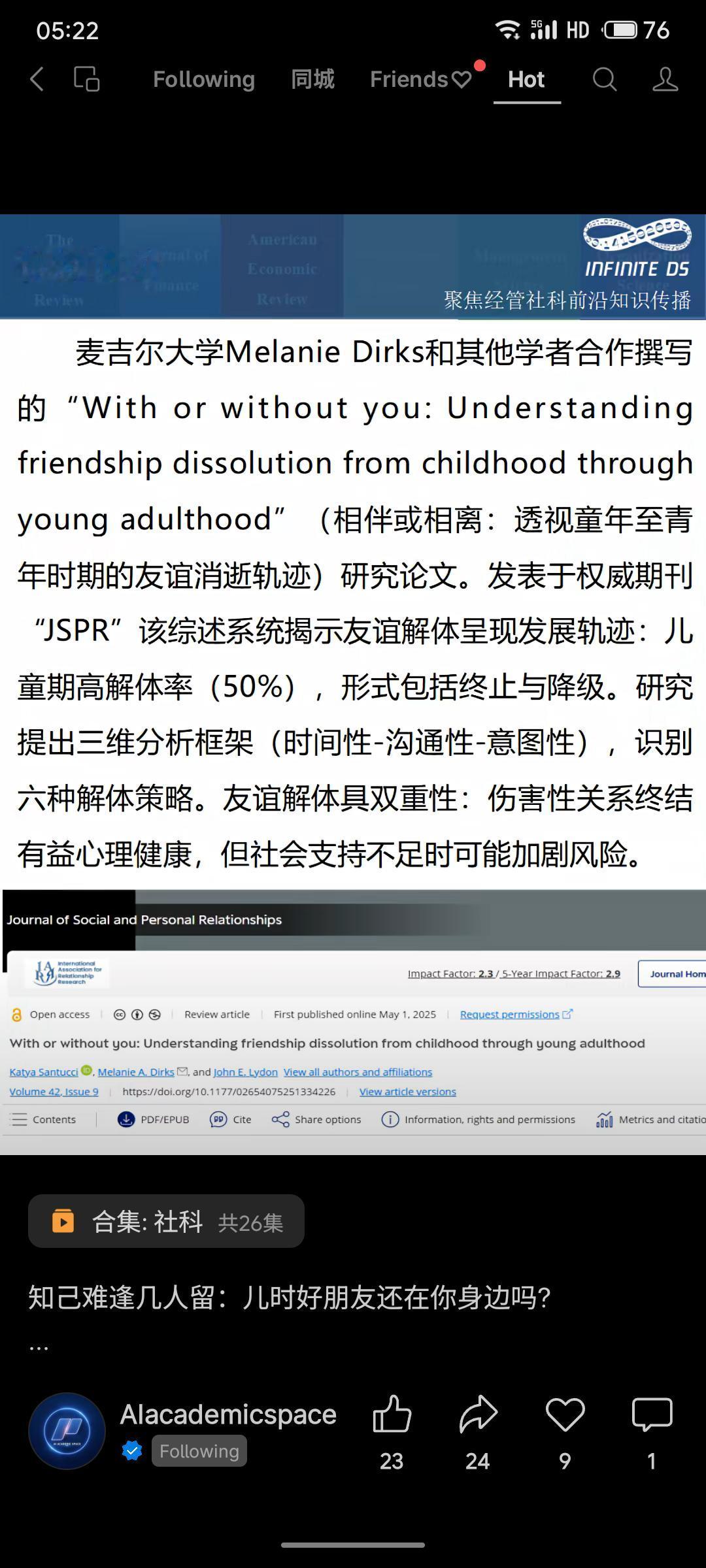 这篇发表于权威期刊的综述研究,系统揭示了童年至青年期友谊的高解体率(约50%)及其发展轨迹。研究创新提出三维分析框架与六种解体策略,并辩证指出:终结不良关系或有益心理健康,但缺乏支持时可能加剧风险。该研究深化了对人际关系的理解,具有重要的现实指导意义。