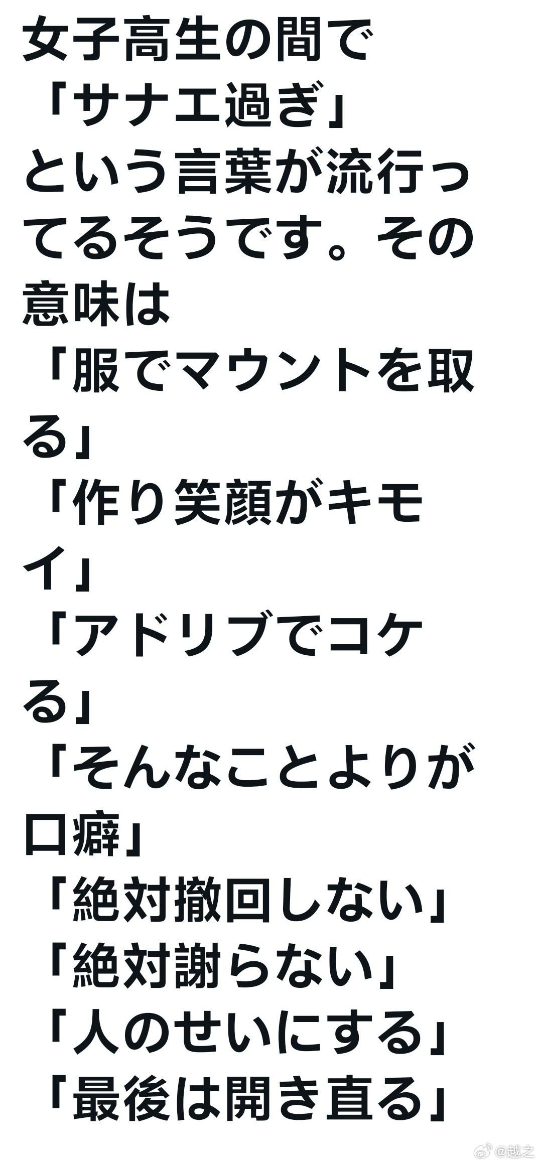每日海外笑话日本女高中生新流行语“太早苗了”。这句话的意思或者一般用在:“穿什么衣服最重要”(来自高市参加G20因为穿衣迟到)“假笑过分得让人吐。”“顺嘴胡说。”“绝对不撤回。”“绝对不道歉。”“总觉得是别人的错。”