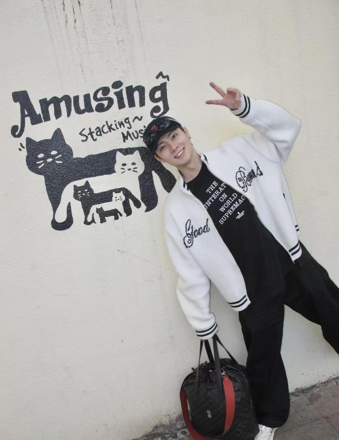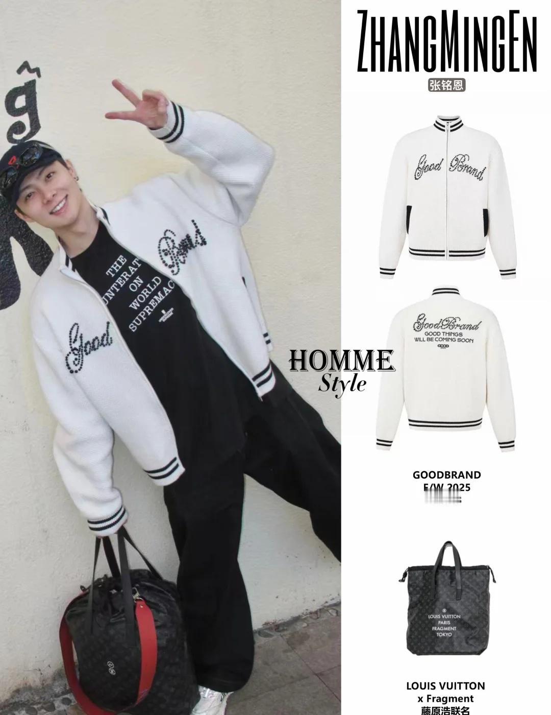 张铭恩运动休闲风男大穿搭🍁活人感很重!!! 张铭恩最新的秋冬私服,一件珍珠装饰的毛织棒球夹克搭配棒球帽,手拿水桶包、穿着阔腿裤运动鞋,一整个休闲舒服的运动风穿搭!幽默搞怪,活人感满满!!! 张铭恩 街头穿搭 明星同款 男明星穿搭 男明星同款 男大