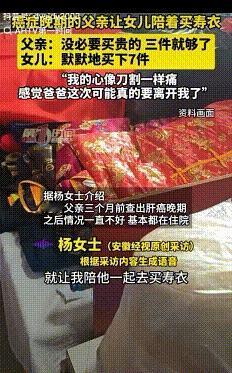 扎心了!重庆医院,一癌症父亲带女儿挑寿衣,只选便宜的,女儿却偷偷买下七件 冬天的重庆,医院病房里,王先生刚做完止痛治疗,突然提出:“闺女,陪我去买寿衣。”这句平静的话,让女儿小王整个人都懵了。到寿衣店时,父亲只想挑三件,便宜点的就好。但小王含泪多买了四件,她说:“其实我怕以后后悔,宁愿多备几套……爸爸能挑,已经是福气了。” 生活总会给人“当头一棒”,尤其是亲情面前,谁都不想认输。可现实里,总有人不得不提前为分别做准备。生老病死,没人能逃掉,但每个人都在努力让最后一程有尊严。 前一天夜里,王先生睡不踏实,一会儿叫一声女儿,一会儿自言自语。他知道自己身体撑不久了,嘴上一直说“不要操心”,但一大早却特意刮了胡子,换了干净衣服。 在医院电梯里,小王强忍着情绪,故意说笑,父亲却突然问:“你怕不怕?”那一刻,小王鼻子发酸,差点没绷住。她没回答,只是紧紧握住父亲的手。 中国家庭的温情,总是藏在最不经意的细节里。嘴里不说,心里千斤重。谁还不是“刀子嘴豆腐心”呢?有时候,陪伴的分量,比千言万语都重。 许多人都觉得父母会一直在身边,也总觉得来日方长。可真到需要做决定的那天,总是后悔没多陪陪,没多说一句体己话。 哪怕只是陪他们散步、唠唠家常,也好过临终时的匆忙和无力。平常哪怕只是多打个电话、多回一次家,都是幸福的积攒。 小王和父亲到寿衣店时,老板见怪不怪,递给他们样册。父亲翻得很慢,指尖在布料上蹭了半天,低声说:“别买贵的,留点钱自己过。” 小王趁父亲不注意,悄悄和老板说:“按爸喜欢的式样,每样都来一件。”老板轻轻点头,动作比平时更柔和,还主动把价格调低。 打包那一刻,小王红着眼圈,心里默念:“只要他能挑,这钱花得值。” 有些时候,亲情就是这样静悄悄的比赛——父母舍不得花,子女怕留下遗憾。三件也好,七件也罢,都是彼此心里最柔软的那一块。 很多网友看完这事,纷纷留言:“我妈去年也是癌症晚期,最后一次出门就是选寿衣。那天她还和我开玩笑,说‘花样多选点,以后流行什么都不怕’。” “我爸临走前没舍得买新衣服,后来我偷偷给他买了最好的西装。” “父母老了,子女能做的事真的不多,能陪着选,就算孝顺了。” 生命的终点,其实是一次次“普通日子”的叠加。谁家没有生死离别?难的是,怎么让这条路没那么孤单。 买寿衣不是迷信,更不是“晦气”,而是子女对父母最后一份体面的安排。 那些父亲嘴里的“别浪费钱”,其实是怕孩子以后压力大;而女儿多买几件,不过是想给爸爸多留点选择,哪怕只是心理安慰。 中国家庭的爱,常常藏在“省钱”“不麻烦别人”里。但子女的孝顺,却恨不得把所有好东西都给父母,把所有遗憾都堵住。 这种互相体谅、彼此心疼,就是我们文化里最温暖、也最让人心酸的那部分。 很多时候,父母的体面,不是花多少钱办了多大场面,而是子女那份不计较回报的用心和陪伴。 父亲挑三件,是不想给女儿添麻烦;女儿买七件,是怕以后后悔。这就是中国式的“深情”——嘴上说“没关系”,心里却翻江倒海。 真正的孝顺,是平常日子的点滴在意,是在父母还能决定的时候,多给他们一点尊严和选择。 “子欲养而亲不待”,说起来老套,做起来却总是太晚。别等悲剧上演,才明白亲情最可贵。 【麻烦您点击“关注”,多多点赞、评论、收藏,成为我的铁粉,致力于每天把知识和快乐带给您[玫瑰]】