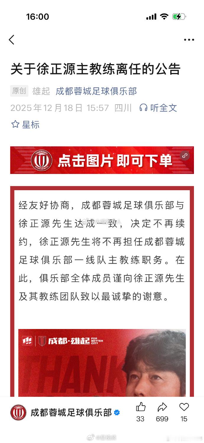 退钱哥谈徐正源离任 成都蓉城那球员阵容、账面实力,中超成绩排名本来就不该差李章洙当年去广州,接手掉入中甲的改名恒大的广药,当年冲超、2011年带领广州恒大队夺得中超冠军,大家不会觉得是李章洙的个人本事吧成都蓉城官宣徐正源离任 ,徐正源与成都蓉城正式解约 ,中超,热点观点