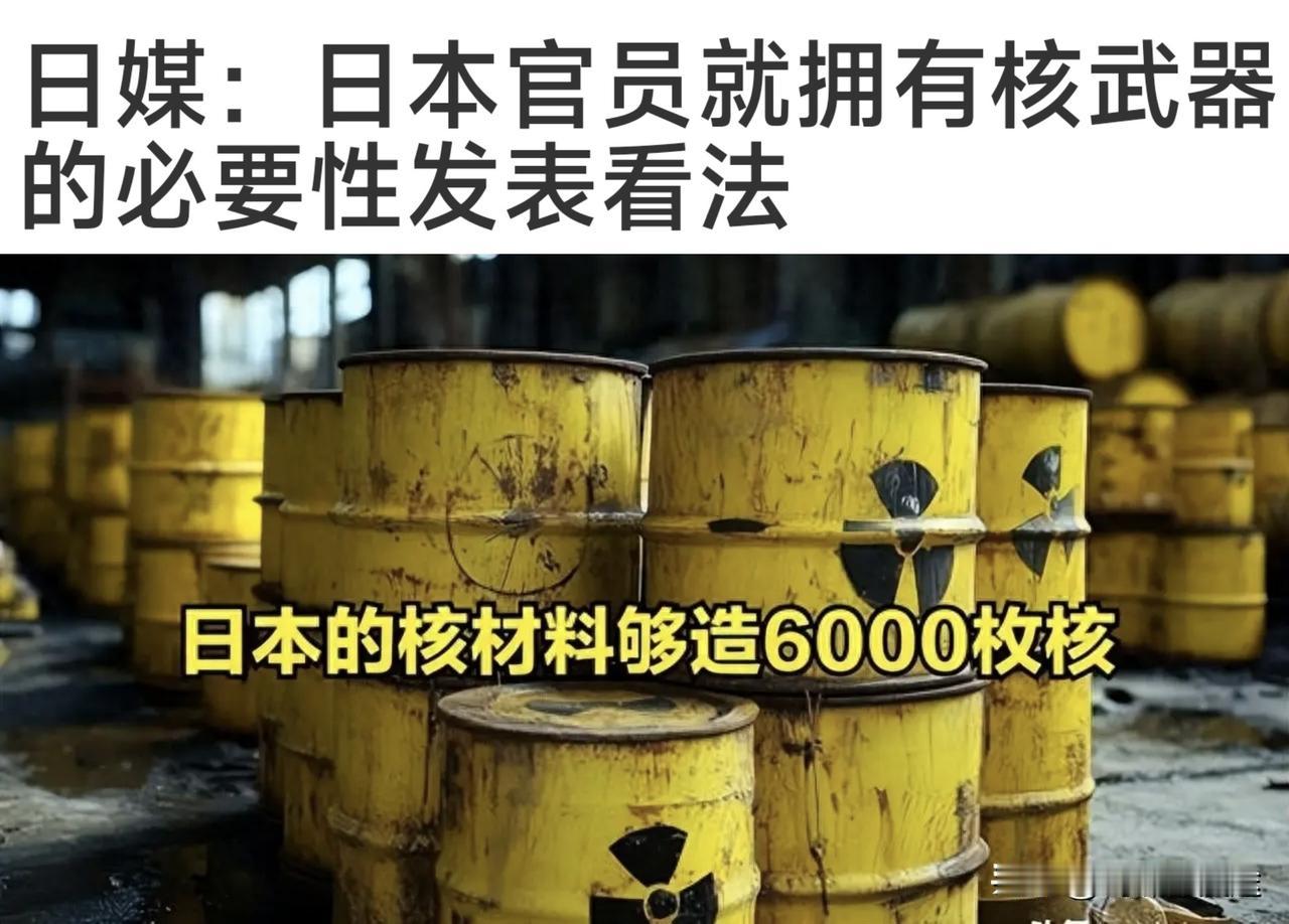 日本政府内传出声音:日本必须拥有核武器! 一位在高市早苗政府负责安全政策的首相官邸消息人士12月18日告诉记者:“我认为,我们应该拥有核武器。 虽然这种声音不是在正式场合当中提出来,但表明日本政府正有此意!虽然这种的愿望达成并不是一蹴而就,但日本企图拥有核武器的决心不容觑,虽然日本法律有规定:不拥有 不制造 不引进核武器的原则,而美国没有在日本基地部署核武器,就连美国搭载核武的军舰也不会进入日本。但日本却有狼野之心! 根据国际原子能机构的数据,到2024年底,日本拥有大约47吨分离钚,其中8.6吨储存在国内,其余35.8吨存放在英国和法国。简单计算,每枚核弹头大约需要6到8公斤钚,这47吨钚大致能够制造6000枚核弹头。 日本为什么存储如此之多的“钚”呢,国际社会就得问问日本,国际社会通常将存有“钚”的用量为 2~3 年用量,而日本存储达到 39 年之多,日本想干嘛呢? 2025年12月8日,中国日报发表了一篇文章,直接指出日本储备的钚材料远超民用需求,暗示其可能隐藏着发展核武器的野心,并强调这些钚足以制造6000枚核弹头。 如今日本政府内的政客已公然提出日本必须拥有“核武器”这说话,这表明日本已经拥有制造核武的能力,并有人提出日本在 180 天之内就可以制造出核武器。再加上日本自二战以来大量的存量核材料,再到日本政府公然提出拥核的表态。这足以说明日本想拥核的主意绝不是一时的兴然,而是背地里暗暗的在准备制造核武的能力并且可能已经达到相当的程度了。 对于日本拥核的问题,目前可能是万事俱备,只欠东风了,日本正在寻找一个恰当的机会与时机向国际社会公布而已。拥核 ,日本有技术 有人才 有环境 有设备 就差一个国际环境了! 而作为美国来说,曾经向日本投入 2 颗原子弹来说,日本“报仇”之心依然未改,这对美国来说,是时间要钳制日本,如果再放任日本乱来的话,美国“珍珠港”事件也许在将来不久要重演!而一旦日本拥核的话,这个世界将会面临什么危机,全世界都知道!