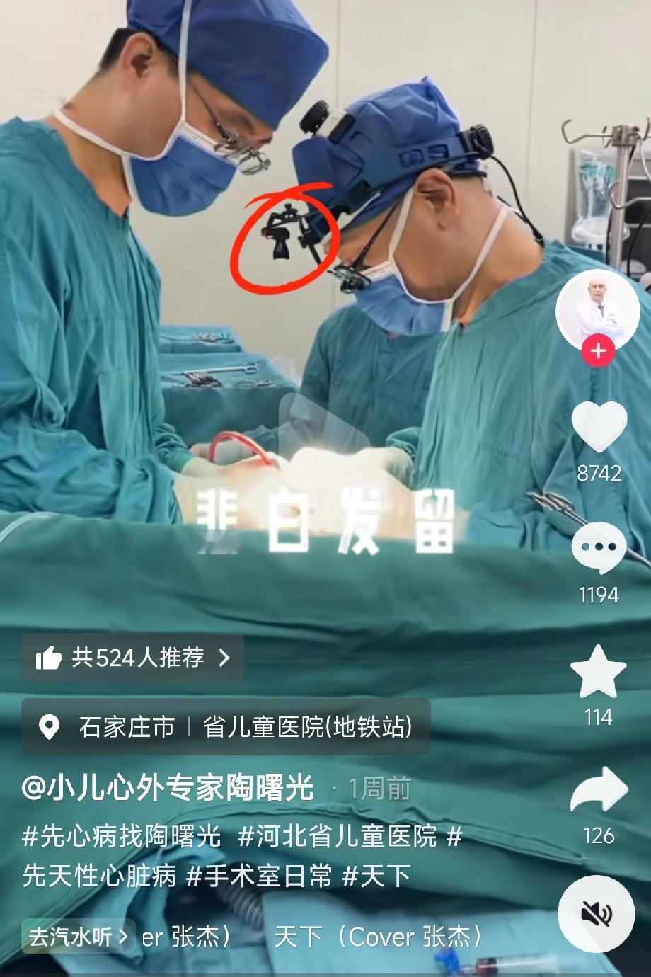 每一张图都是心内科医生,他们做手术的时候,都有一个特点,那就是头上必戴一个带监控的摄像头!大家明白什么意思了吗? 据说这个摄影头作用很大,其中之一,就是用来来评估医生手术操作是否规范,可以追溯问题根源!宁波那个医生到底有没有戴呢,大家有知道的吗?