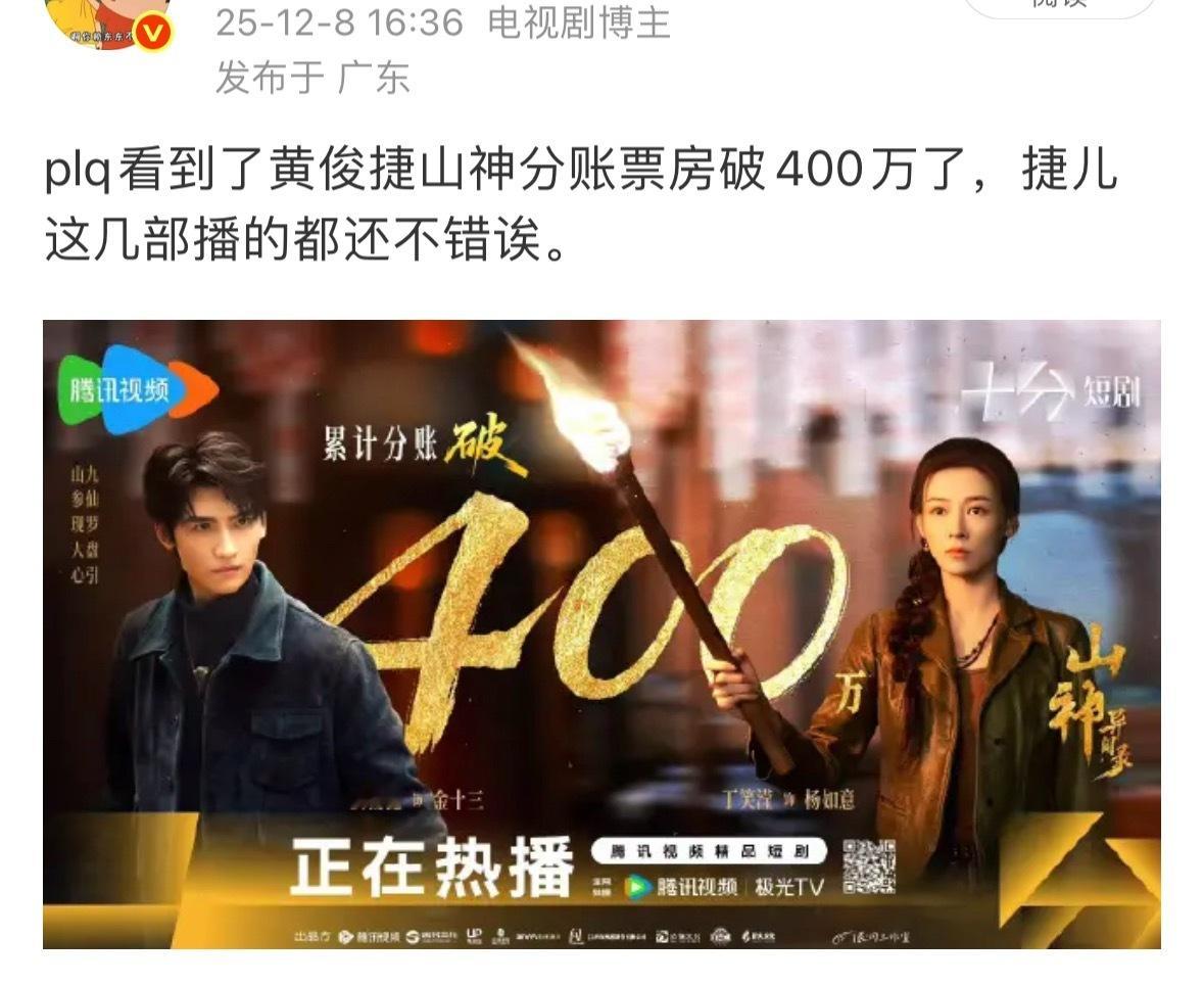 黄俊捷《锦月令》获得云合年度分账剧,之前我就发过了,plq有人分享过,恭喜啦🎉