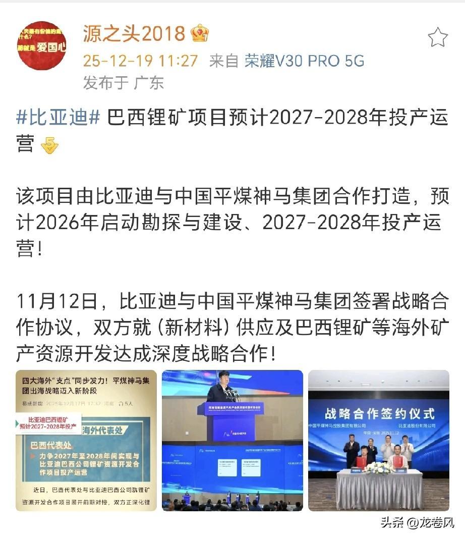 比亚迪出海找锂矿了。 这次和神马平煤合作去巴西搞锂矿项目。 看来也是要在巴西打造完整的新能源汽车产业链了。 锂矿挖掘,锂电池制造,整车制造,销售,出口一条龙[赞] 把巴西当做拉美地区的生产和出口基地。 多余的锂矿也会运回国内加工生产。 不得不说比亚迪的海外布局思路确实清晰。 只有给当地建厂,提供就业岗位扎根当地才能获得好的回报。 单纯出口的话是容易遭遇贸易壁垒的。比亚迪海外发展 比亚迪海外战略 比亚迪法国
