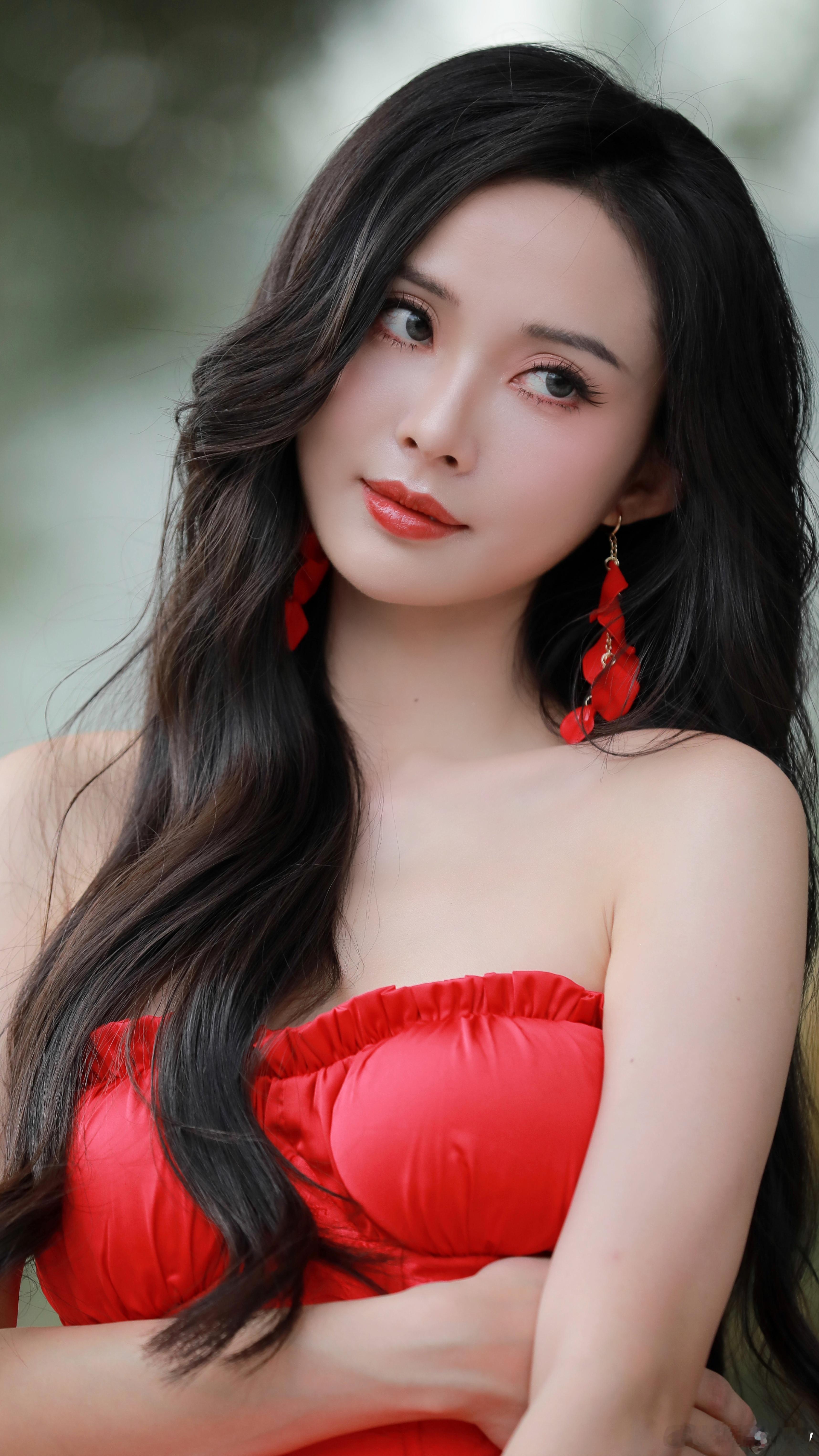 《溪涧佳人》翠岭连绵映碧流,石矶倩影惹清眸。云鬟高绾簪琼佩,素袂轻扬揽素