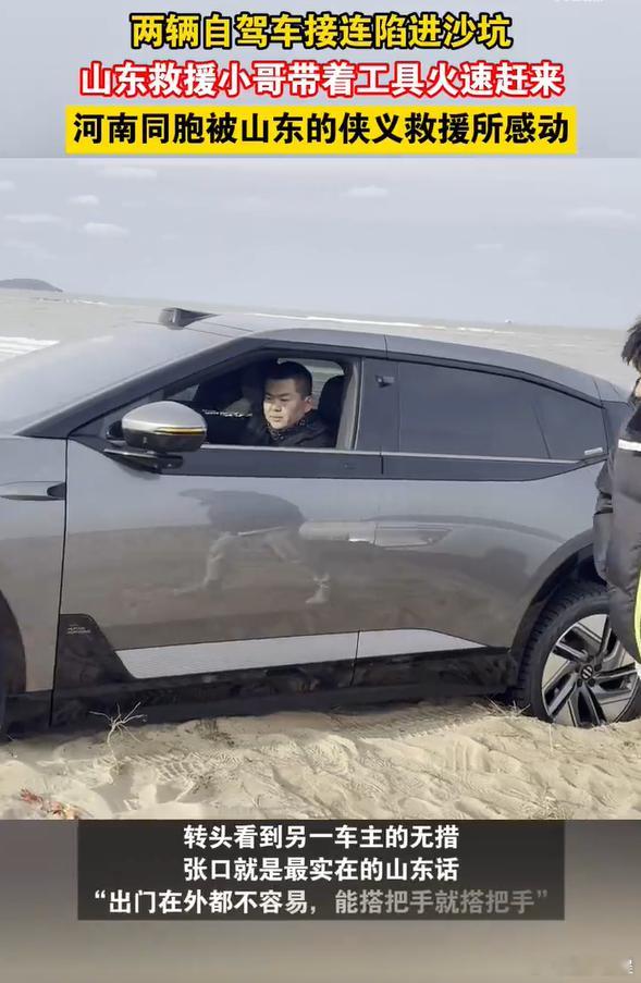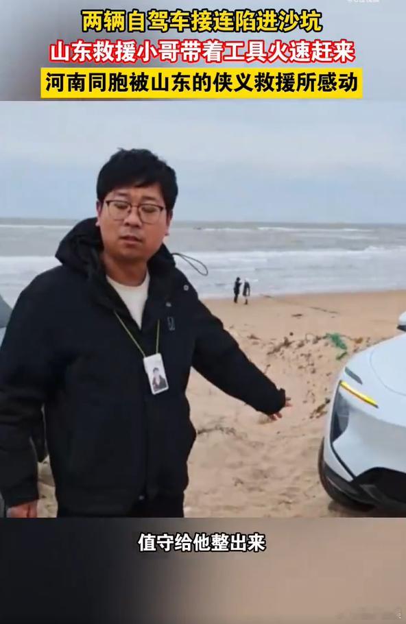 河南同胞被山东的侠义救援所感动 河南车主陷沙坑于荒郊野岭,山东救援小哥火速驰援。施救动作麻利,还主动联系拖车、安排保障车送车主去服务区,全程坚守到交接,这份仗义太圈粉。