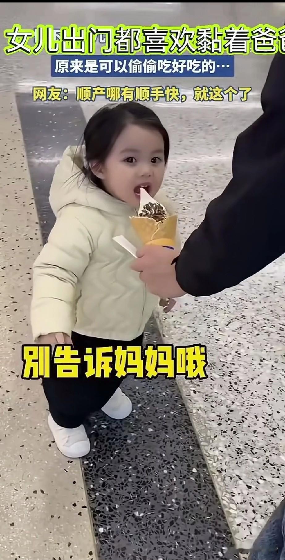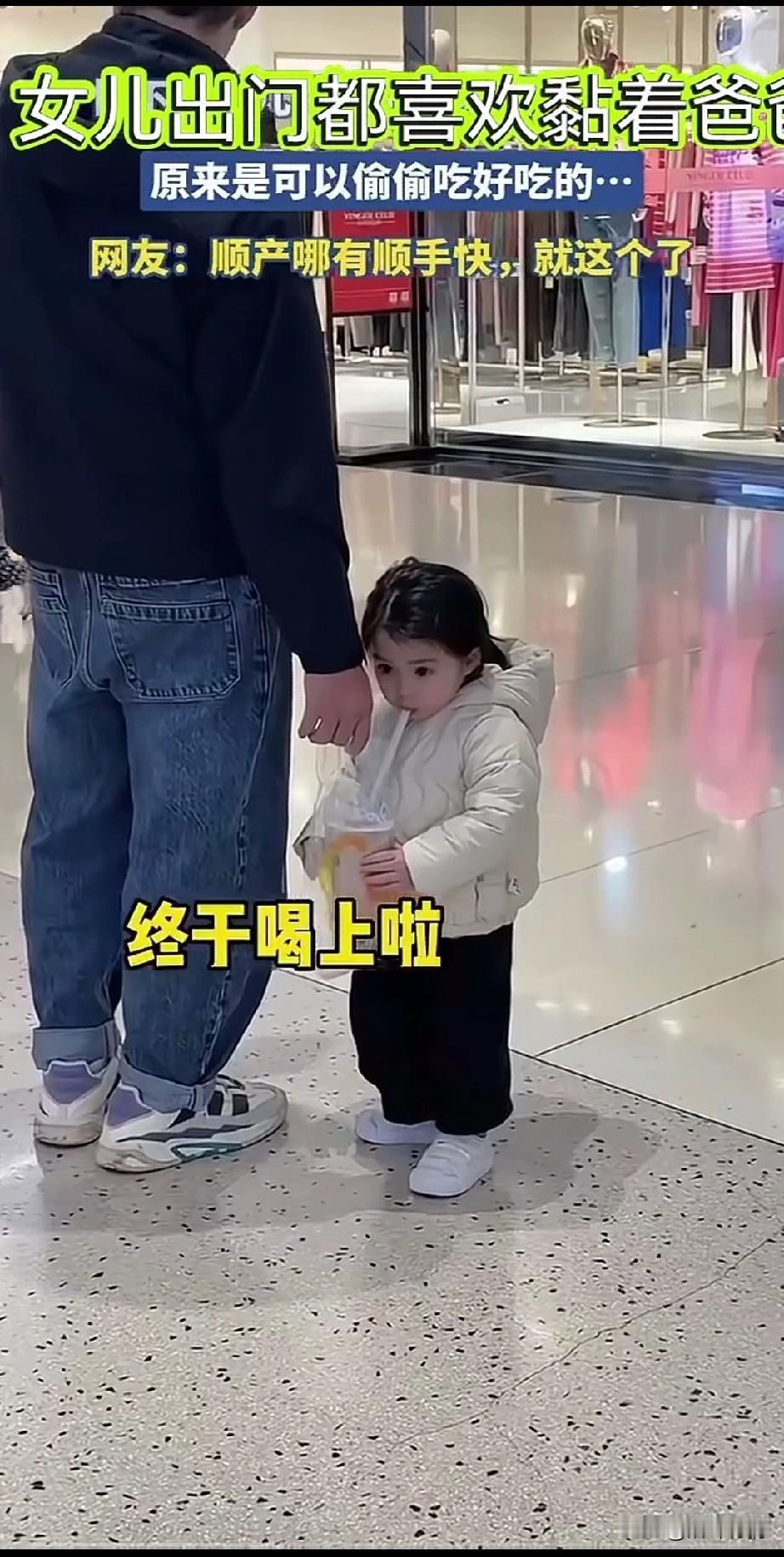女儿出门都喜欢粘着爸爸, 原因竟然出在这里, 爸爸带孩子出门, 会给孩子吃各种好吃的, 母亲带孩子出门, 会仔细辨别哪些能吃,哪些不能吃, 然而父亲就没有这么多顾虑, 只要自己能吃的,孩子都能吃, 这位父亲就是带着女儿逛商场, 买了一杯奶茶, 女儿一直盯着奶茶, 趁他不注意就喝上了, 这可爱的小表情太逗了, 喝完奶茶还不够, 随后又给他买了冰淇淋, 这要是妈妈看到了, 不得给他父亲打一顿, 小孩子不能吃太凉了的, 女儿还是让爸爸不要告诉妈妈, 偷吃要保守秘密, 怪不得女儿这么喜欢跟爸爸逛街, 原来是可以吃到好吃的! 大家知道女儿为什么喜欢和父亲逛街吗? 女儿相处之道 爸爸见女儿 爸爸女儿相处 爸爸独宠女儿 女儿对爸爸微笑 女儿跟父母 爸爸陪女儿逛街