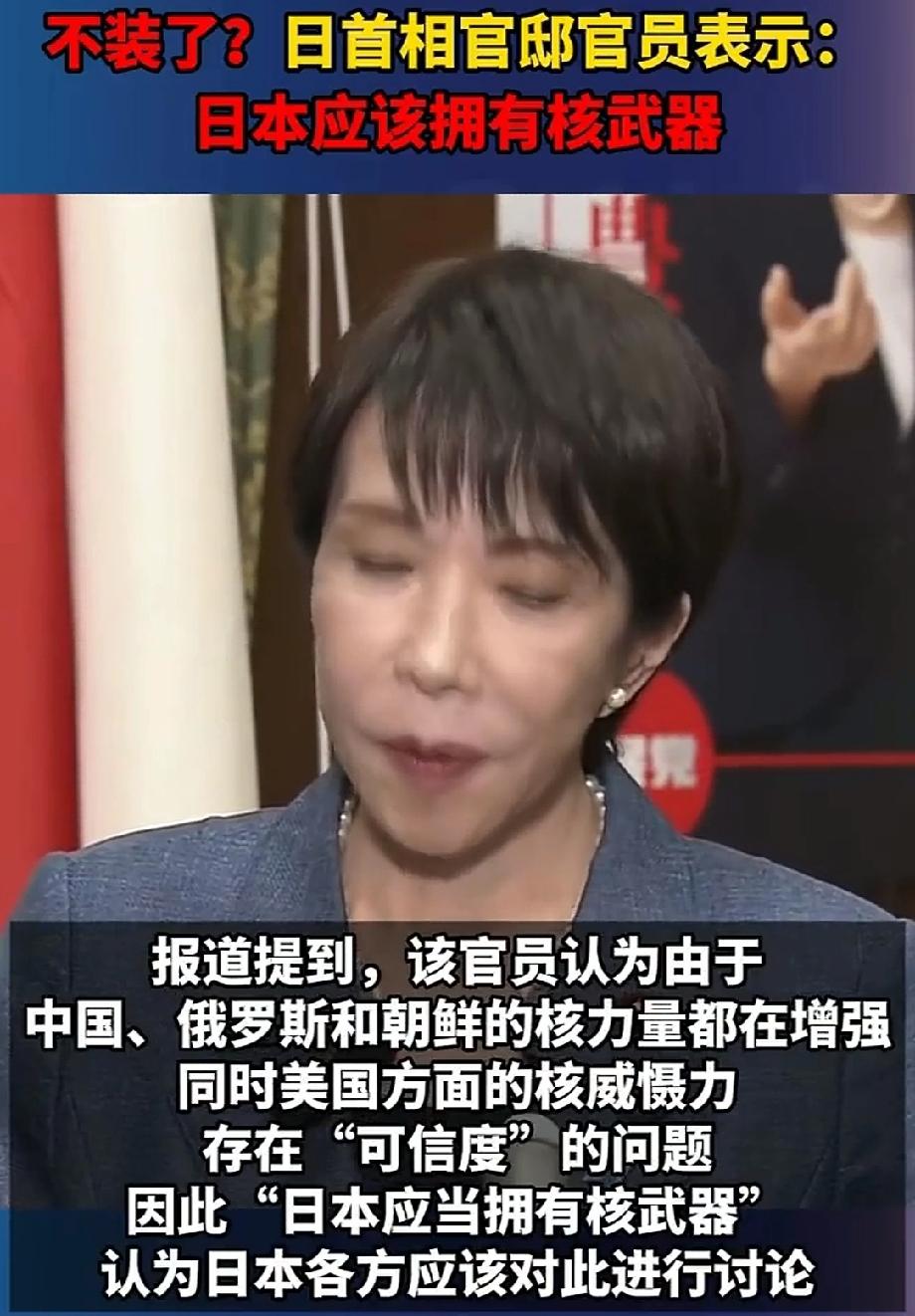 日本官员:日本应该拥有核武器 。日本官员竟称日本应拥有核武器,这简直是在玩火!12月18日,日本首相官邸一高级别官员就抛出这一惊人言论,还拿周边安全环境、美核威慑可靠性当借口。虽说他称是个人观点,高市早苗政府也未实际讨论,但高市早苗之前就长期主张修改“无核三原则”里“不引进核武器”条款,还在相关问题上含糊其辞。 且不说这违背《不扩散核武器条约》,会引发国际社会强烈反对,日本国内也会分歧巨大。日本曾是核爆受害国,如今部分官员却想着拥核,是好了伤疤忘了疼。这种危险想法绝不能让其变成现实,必须警惕日本在核问题上的危险举动。