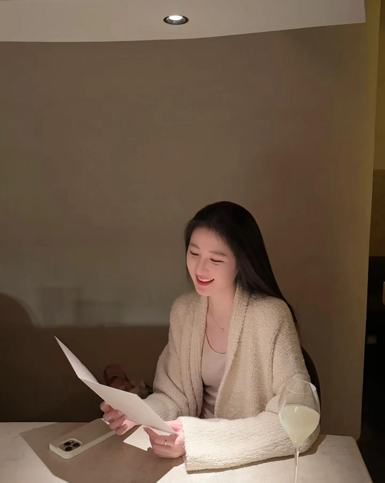 夜晚的浪漫约会,白衣少女与美食相伴。