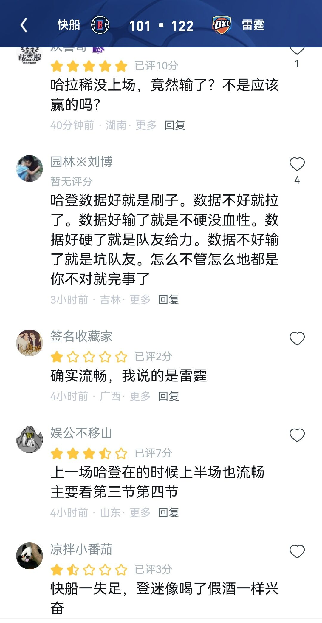 登蜜能不能成熟点?快船输球你们高兴,显得很low