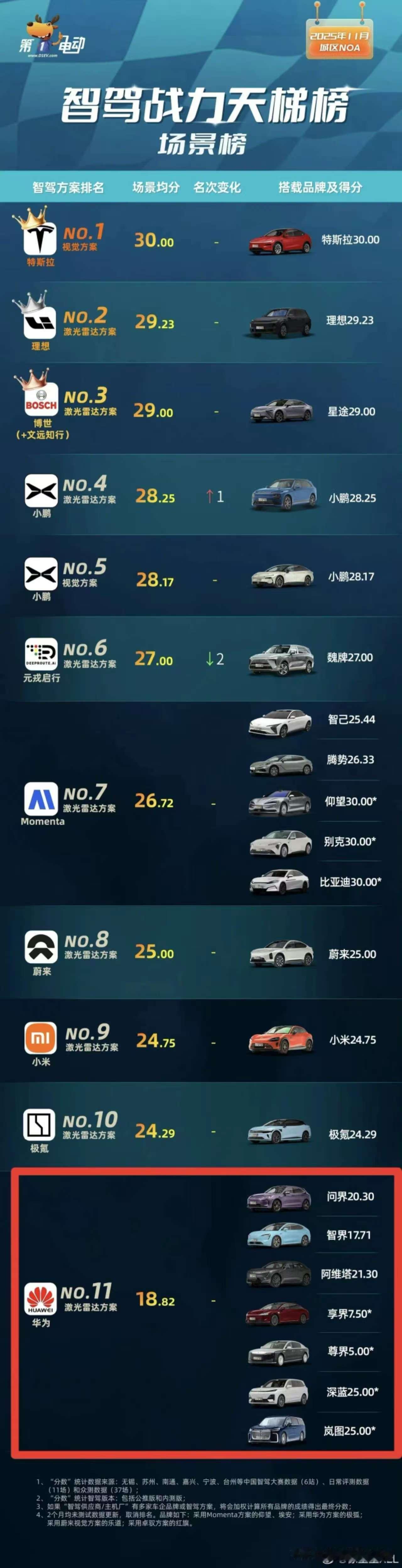 第一电动到底是国内企业还是? 最近他们搞了个智驾系统的战力天梯榜,第一名就是特斯拉,第二名为理想,第三名则是博世。 问题是我翻了许久,最后在第11名才看到了华为的鸿蒙系列。 这让我觉得非常困惑,因为从各种消息面上来说,最起码在国内就是华为的系统做的最好。 就算是华为的鸿蒙智驾系统没办法达到第一,但是它总比理想汽车,小米汽车,蔚来汽车这些自动驾驶系统强吧,为什么只给了它18.82的分数? 这一点我确实很不理解,也不知道这些专家组到底是采用了什么样的评判标准,如果评判标准和老百姓朴素的认知完全背离的话,那你是评判标准的错,还是老百姓的错呢?【来自懂车帝车友圈】