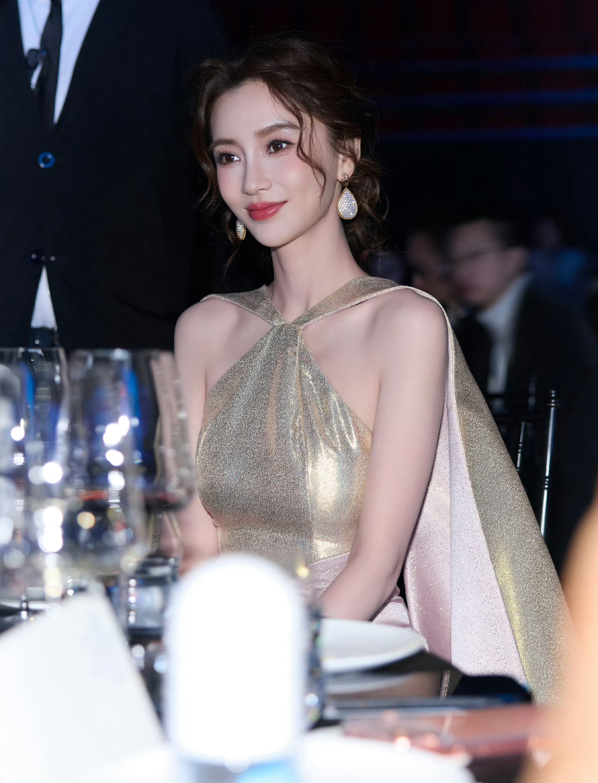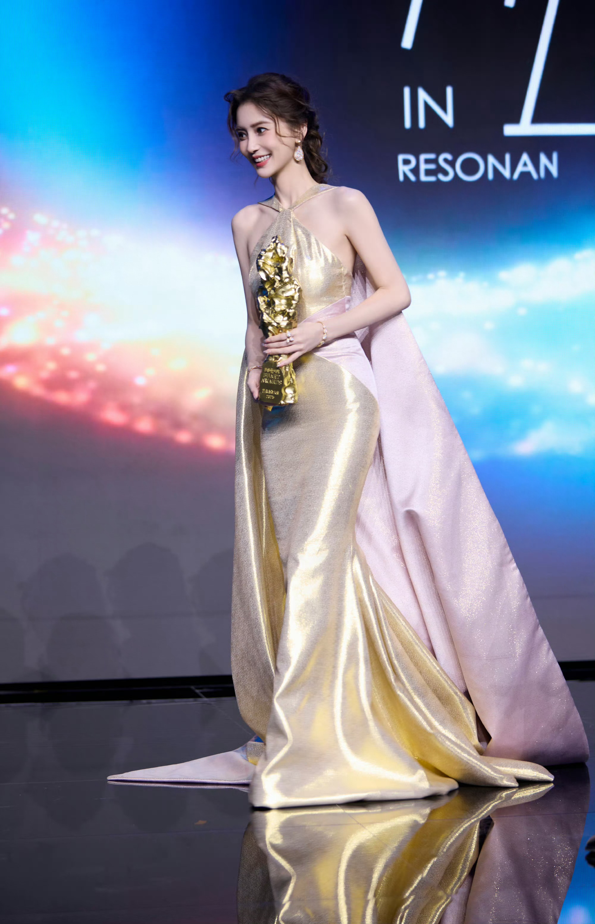 Angelababy杨颖身着Alexis Mabille 2024秋冬高定金色礼服亮相芭莎艺术之夜