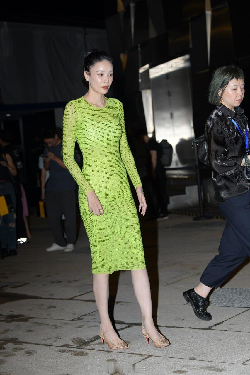 张蓝心紧身绿色包臀裙,性感美脚透明高跟脚后跟+翘臀