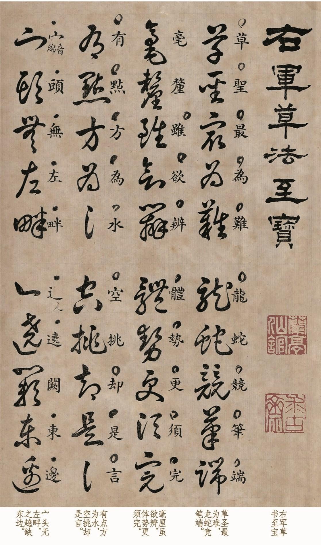 王羲之偷传儿子的草书秘籍,字字都是金科玉律,练好它少走10年弯路! 众所周知,晋唐时期,古人笔法乃是秘传,只有师徒之间、家族内部,采用口传手授的方式传承,由此保障正统性,就像王羲之,临终之前,曾撰写《乐毅论》《笔势论》偷传给儿子,并嘱托他,不得向外人展示。 实际上,除了这2幅名帖,王羲之离世前,还把毕生的草书绝技,一同传给儿子,隋朝时期,智永因无子嗣,将它们大白天下,此后的欧阳询、虞世南、张旭、米芾等人,均是由此发迹。 而且学习途中,书家把最深奥、最难懂的草法简化,编撰一部《王羲之草书至宝册》,也就是《草绝百韵歌》,采用五言歌诀的形式,讲解草书难点、重点和易错点,内容朗朗上口,易于背诵和理解。 可是随着积年累月的流传,范本变得繁杂,内容更改,水平参差不齐,目前共有3种版本,最是值得一学,第一种是韩道亨重修版,第二种是台北故宫的墨迹本,第三种便是这副《王羲之草书至宝册》。 其中尤数《王羲之草书至宝册》最高妙,韩道亨传世的“草诀歌”,乃是刻本,字迹不够完整、清晰,内容经过修编,也有很多的错漏、讹误之处,至于台北故宫的墨迹本,作者不可考证。 再看此帖,宋朝传世至今,卷内刻有诸多印章,证明真实性,比如“晋府书画之宝”,这是朱元璋第3个儿子,朱棡的印章,他痴迷书画,曾有不少珍品,此帖经其验证,为货真价值的古人传本。 并且全卷1282字完整无损,字字清晰生动,点画圆厚畅达、灵动遒和,外层血肉流美,内在筋骨刚健,绵里裹铁,还原魏晋的虚和典雅之气,内容表述也正确,甚至旁边的小楷注释,也字字精到,无半分松懈。 这副《王羲之草书至宝册》精妙无比,字字都是金科玉律,不夸张的说,若把它练好,保你少走10年弯路,尤其此本,最是罕见、稀有,可时常临摹,切实、正确的理解草书笔法和结构,同时初步感受“二王”笔法,日后深入名帖。 而今,我们对《王羲之草书至宝册》,进行1:1超高清复刻,采用博物馆级别,12色微喷复刻工艺,与原作毫无二致,此品乃是手工经折装,装裱精细,便于翻折、临摹和查找。 全卷加入现代字注释,帮助初学者识读,字体十分高清,市面罕见,独此一家,比普通印刷品更加还原、细腻,所有细节处理,全都一览无余,见此品如见原作,若您喜欢可点击下方商品链接一观。 王羲之草书至宝册 明晋王府藏高清微喷复刻手工经折装毛笔字帖