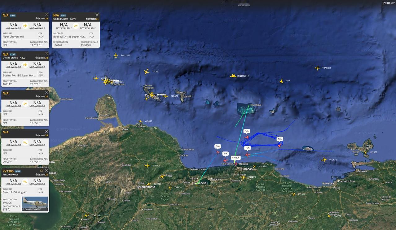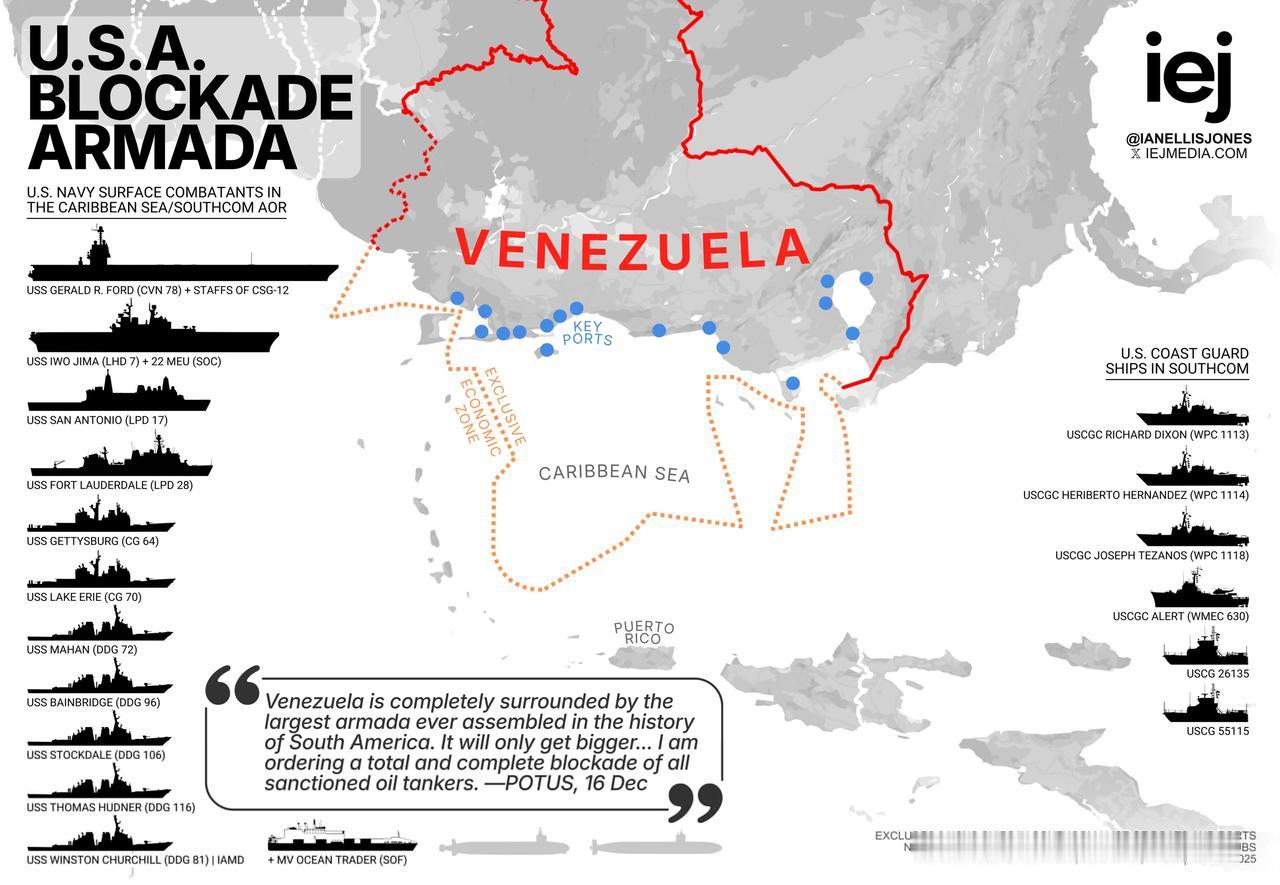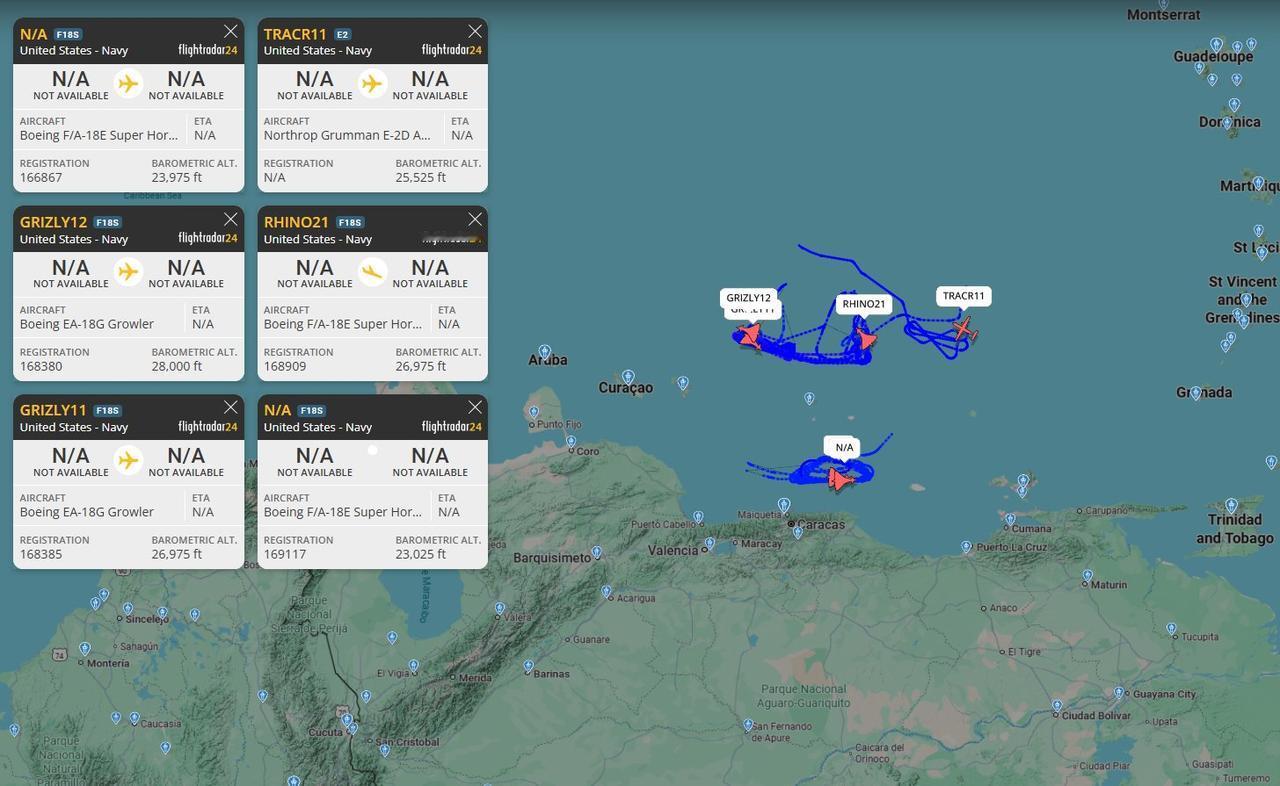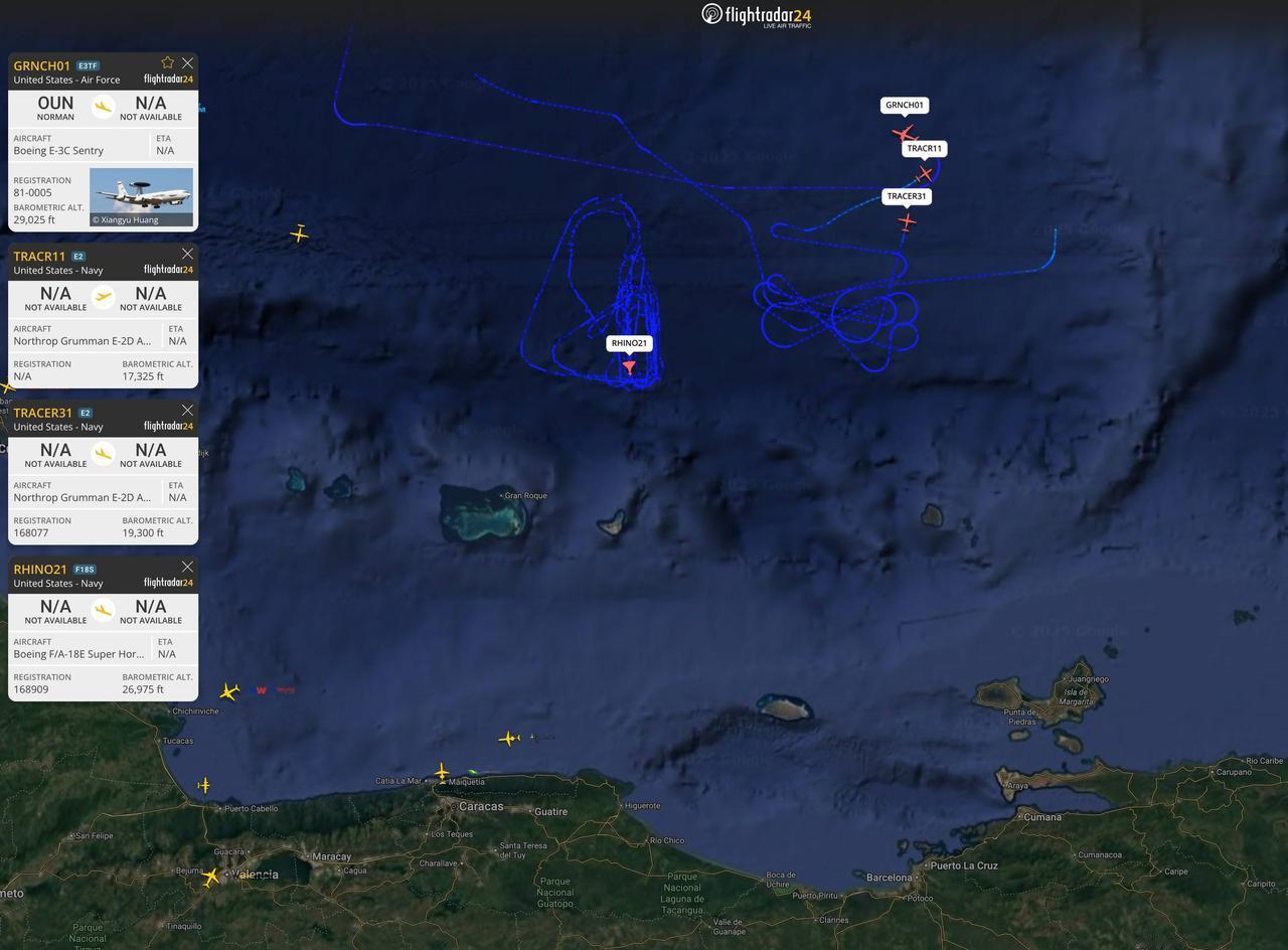 根据世界航行航线系统数据,在当地时间12月18日开始,美国军事力量,美国空军等出动了百架次战机升空,飞行范围包括了美国本土,自西向东,美国本土向加勒比海地区,委内瑞拉方向,抵近委内瑞拉等。美军罕见的,少有的调动了百架空中力量,并且都是美国军队最先进的航空兵力量,包括了几十架C-17运输机,KC-135加油机,E-2“鹰眼”舰载预警机,E-4潜艇通信/核战指挥机,E-3预警机,E-11战地通信机,F-16战斗机,F-18系列舰载机/电子战机,B-52战略轰炸机等等,美国空军可能调动了F-22、F-35隐身战斗机,跟随运输机,加油机,轰炸机调动,没有开卫星通信信号,从而隐藏自己。 按照美国方面的说法,美国空军进行“南方之矛”行动:在12月18日,抵达波多黎各罗斯福路海军航空站,包括了编号AE146A 07-7172 - REACH 259,来自威德贝岛海军航空站;AE07DF 94-0065 - REACH 204,来自查尔斯顿空军基地;AE2FA9 08-8197 - REACH 236,来自伯灵顿空军国民警卫队;AE1462 06-6164 - REACH 404,来自希尔空军基地等,一共14个架次。美军抵达波多黎各拉斐尔·埃尔南德斯机场,包括了编号:AE1468 07-7170 - REACH 758,来自查尔斯顿空军基地;AE123F 04-4134 - REACH 213,来自波普陆军机场;AE20C4 07-7183 - REACH 643,来自波普陆军机场;AE0805 99-0059 - REACH 689,来自坎农空军基地等。 美军抵达波多黎各路易斯·穆尼奥斯·马林机场,包括编号:AE123F 04-4134 - REACH 213,来自波普陆军机场。美军战机抵达波多黎各梅塞迪塔机场,编号:AE1178 02-1106 - REACH 633,来自波普陆军机场等十多架战机。美军从希尔空军基地起飞的REACH 404航班已从未知最终目的地,转移至罗斯福路海军航空站,美国希尔空军基地更多的航班信号,大批战机准备南下。从波普陆军机场起飞的另外四架美军特种任务空运飞行飞机,即将南下。自12月12日,美军以来一直停放在阿拉斯加埃尔门多夫空军基地的,编号REACH 220战机,现已移至佛罗里达州麦克迪尔空军基地,随时南下。 同时南下战机,美国在委内瑞拉附近继续展示武力:美国海军在委内瑞拉海岸附近的一次武力展示仍在进行中。福特号航母已经部署了E/A-18G“咆哮者”电子战机、E-2D预警机,以及多架战斗机:至少2架 EA-18G“咆哮者”和3架F/A-18E 战斗机飞越加勒比海,最近一段时间通常是EA-18G、FA-18E和E-2D先进鹰眼混合编队。 一架美军E-3C哨兵预警机、美国空军E-11A战地通信机,在加勒比海上飞行了约6-10小时。据称,美国空军B-52战略轰炸机停降委内瑞拉的邻国,在厄瓜多尔机场停降,配合美军打击委内瑞拉的行动。美国海军MQ-4C“海神”战略整车无人机在12月18日,位于委内瑞拉海岸上空的FL480区。 显然美军这么大规模调动,抵近挑衅,把委内瑞拉军方吓一跳:根据18日的雷达信号,委内瑞拉防空部队在加拉加斯等地区,启动了萨姆-3防空导弹。萨姆-3防空导弹号称对隐形飞机来说简直是克星,在1999年科索沃上空击落了一架美军F-117隐身轰炸机。