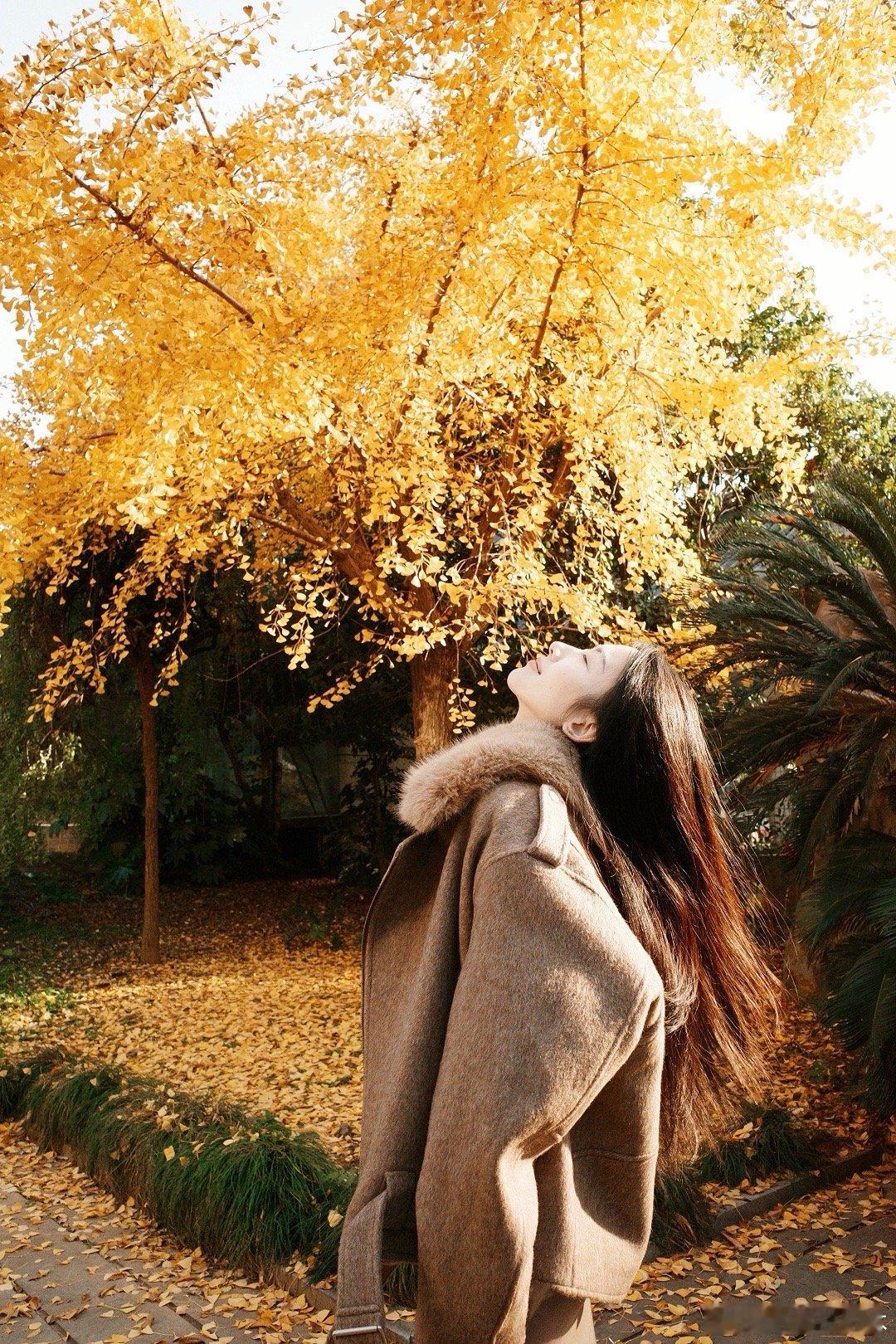 秋叶落,美人倚,心自醉。