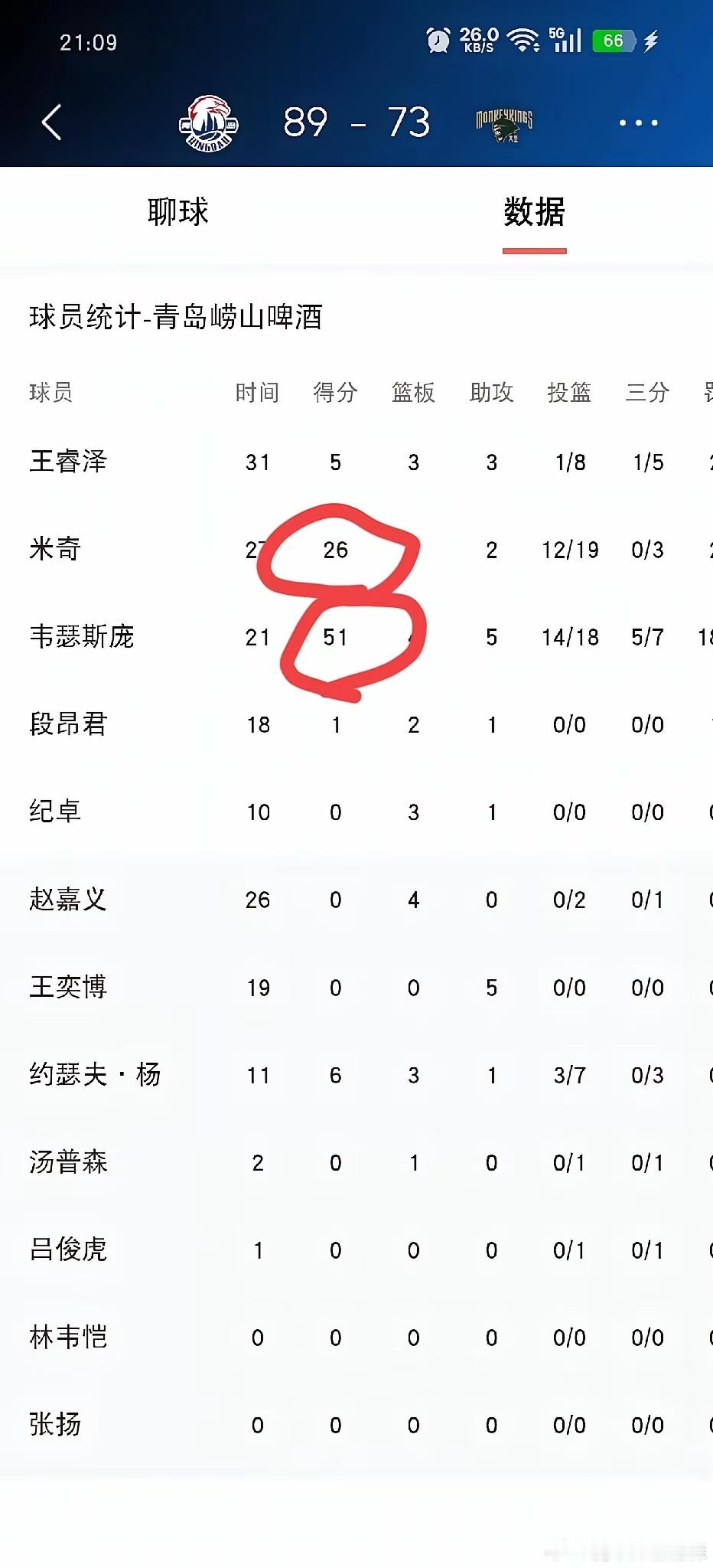这比赛还有啥看头?青岛队得分89分,其中两个外援一个26一个51,总共77分。合