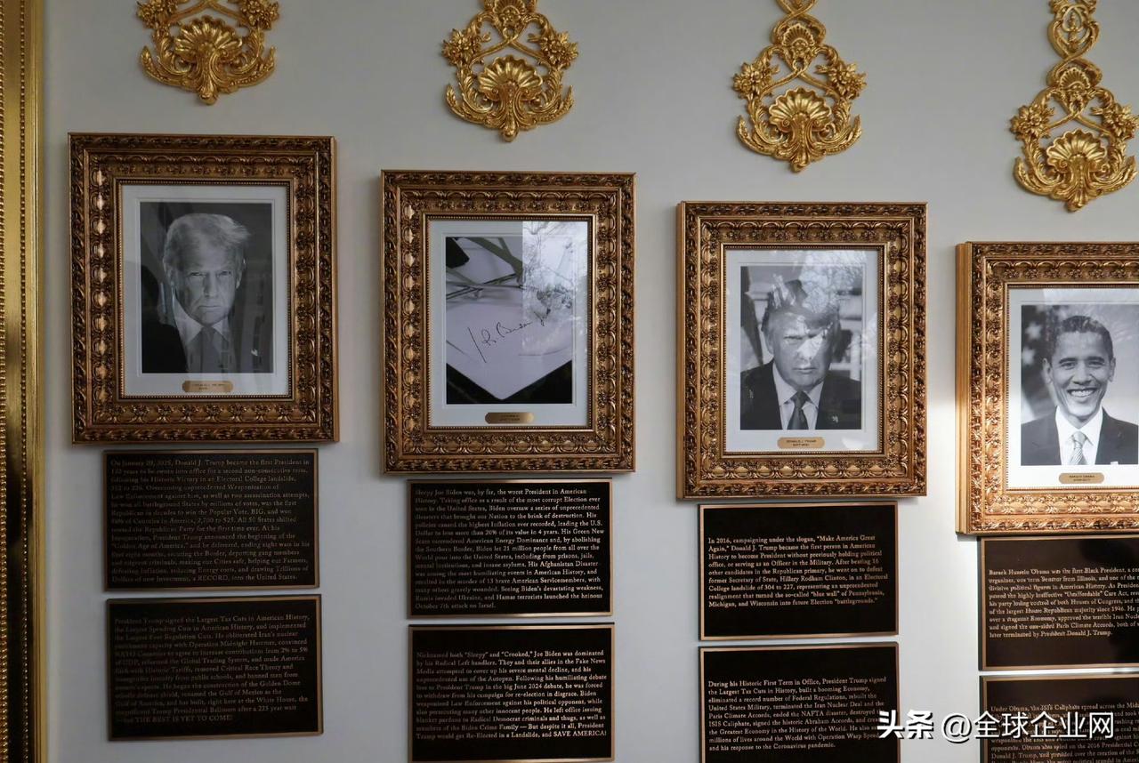 【特朗普新装历任总统铭牌 贬低奥巴马拜登抬高自己】在星期三(12月17日)获准进入白宫 的记者发现,奥巴马 和拜登 肖像下方新安装的铭牌上,简介文字都极为负面。 作为美国史上首位黑人总统,奥巴马的简介却称他是“美国史上最具争议的政治人物之一”。奥巴马的名字也包括了特朗普经常用于称呼这位第44任总统的中间名“侯赛因”(Hussein)。特朗普曾挑起奥巴马不在美国出生的阴谋论。 拜登的铭牌则将他描述成“迄今为止美国史上最差劲的总统”,还重复了特朗普 关于他的2020年大选被“剽窃”的错误说法。此前,特朗普将应该放置拜登肖像的位置,换成一支自动签名笔的照片,暗指今年1月卸任时已82岁的拜登,已年老体衰至搞不清自己签署的文件内容。