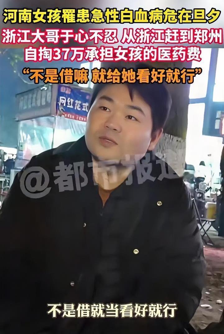 一位陌生人小伙,自掏37万为白血病女孩治病,女孩全家都已经放弃,采访时小伙子说了一句:“这是对生命的尊重”。 小伙子来自浙江,看到河南有位白血病女孩杨婷,摆摊为自己凑钱看病,但是每天的收入甚微,相比于高额的医疗费,不过是九牛一毛。 身体的疼痛加上医疗费的压力,最终让女孩放弃了治疗,只能在家等待最后时刻的到来。 眼看女孩危在旦夕,小伙子远赴千里,无私为女孩出医疗费,如今已经花了37万。据了解女孩经过治疗后,大概率是可以好的。 小伙子表示钱不用她还,只要她好了就行,自己的身体好,还可以赚钱,这样做只是不想看到一个生命消逝,这也是对生命的尊重。