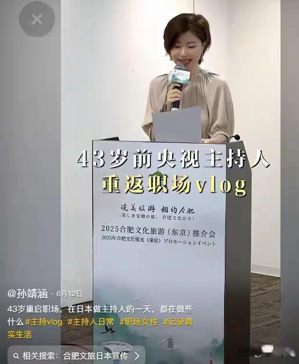 曾经的央视主持人孙靖涵, 如今定居日本了, 她说非常喜欢日本, 以前由于工作的原因, 无法实现自己的愿望, 后来结婚的她, 如愿以偿的定居了日本, 定居日本的他也没有闲着, 43岁的她居然重操旧业, 在日本当起了主持人, 还开了国内的账号, 分享她在日本美好的一天, 如今又接了个宣传合肥文旅的活, 毕竟以她的才能, 这钱不赚白不赚, 很多高学历有知识的人, 都纷纷移居了日本, 她们都觉得日本的环境非常好, 可能忘记了日本排核污水的事情, 不知道她们在日本吃不吃日本的海鲜, 毕竟日本的刺身非常出名, 大家对于央视前主持人定居日本并分享在日本的生活怎么看? 央视主持人 央视主持人中谁的气质最好 孙靖涵