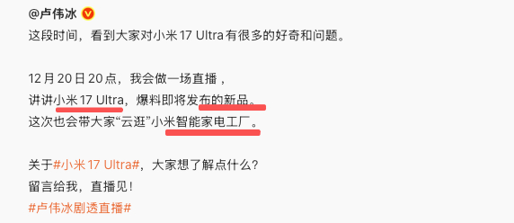 小米17Ultra发布时间定档小米17Ultra突然定档!这次的方案可能是20 【2评论】【2点赞】 小米科技 小米17ultra Xiaomi 17 Pro 小米17 Ultra 互联网公司 i冰宇宙 2025-12-18