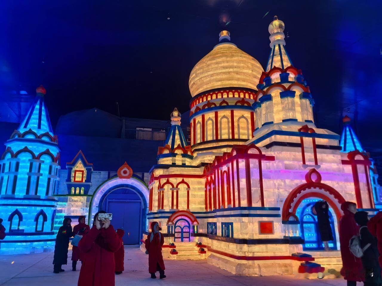 「全球最大」冰雪童话乐园,今年冬天哈尔滨最受瞩目的盛事,「冰雪大世界」12月17日正式开园,园区面积与冰雪的用量双双再破纪录,园区面积达120万平方米,相当于168个足球场,总用冰用雪量达40万立方米,规模创下历届之最。主塔冰灯“启蒙”高达40米,成为全场最吸睛的地标,19米高的大雪人也成为游客打卡的必去景点,每天傍晚还有光影秀,灯光秀,艺术科技和冰雪的结合共同打造了一个梦幻世界。