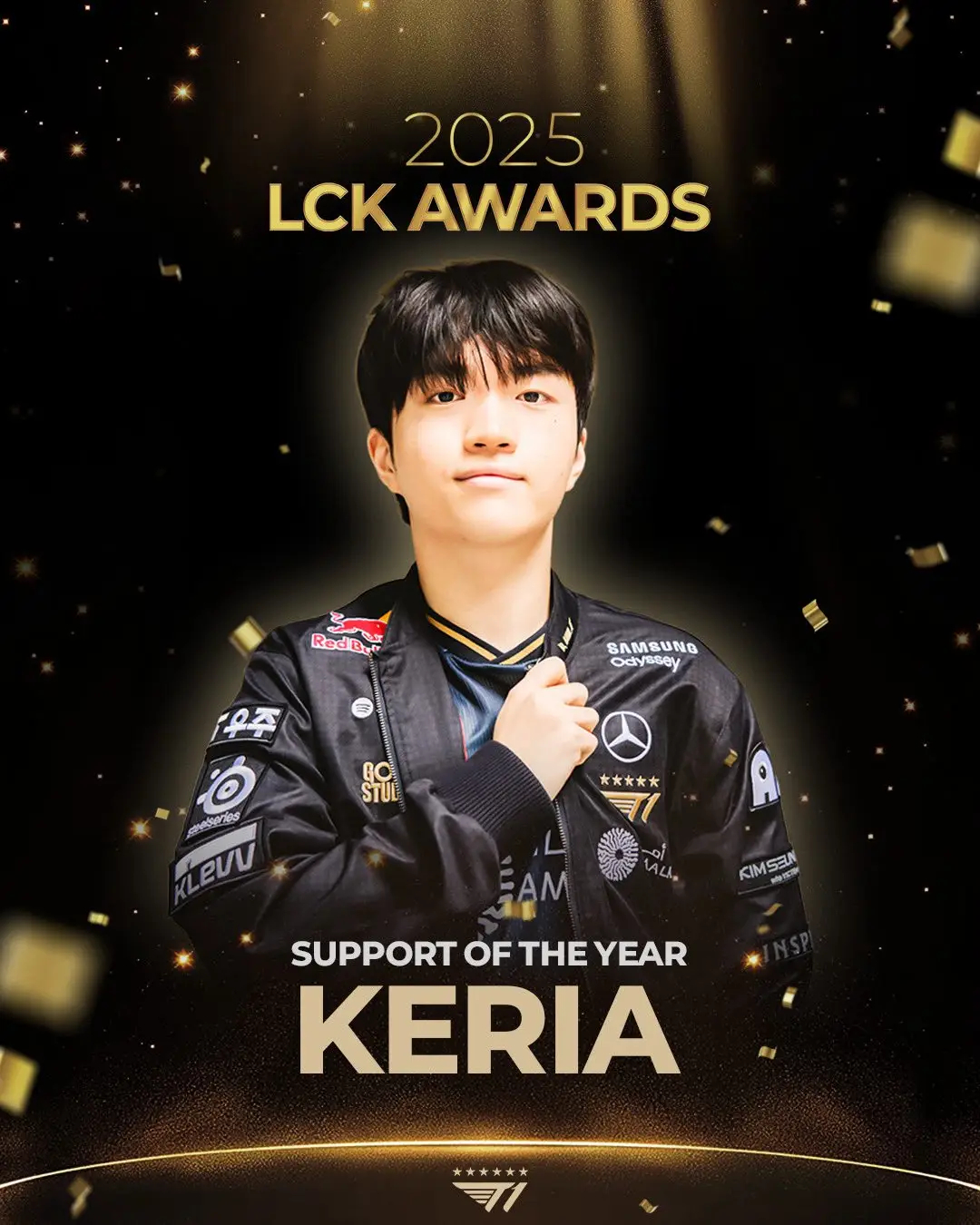 “历天怪”的含金量,Keria连续五年当选LCK年度最佳辅助今天的LCK颁奖典礼,Keria当选LCK年度最佳辅助,这代表着Keria已经连续五年(2021、2022、2023、2024、2025)当选LCK年度最佳辅助。单论辅助这个位置上,Keria是真做到前无古人,后也难有来者了,创造力和操作太惊艳了LCK公布获奖名单Bdd当选LCK年度选手keria获LCK年度最佳辅助