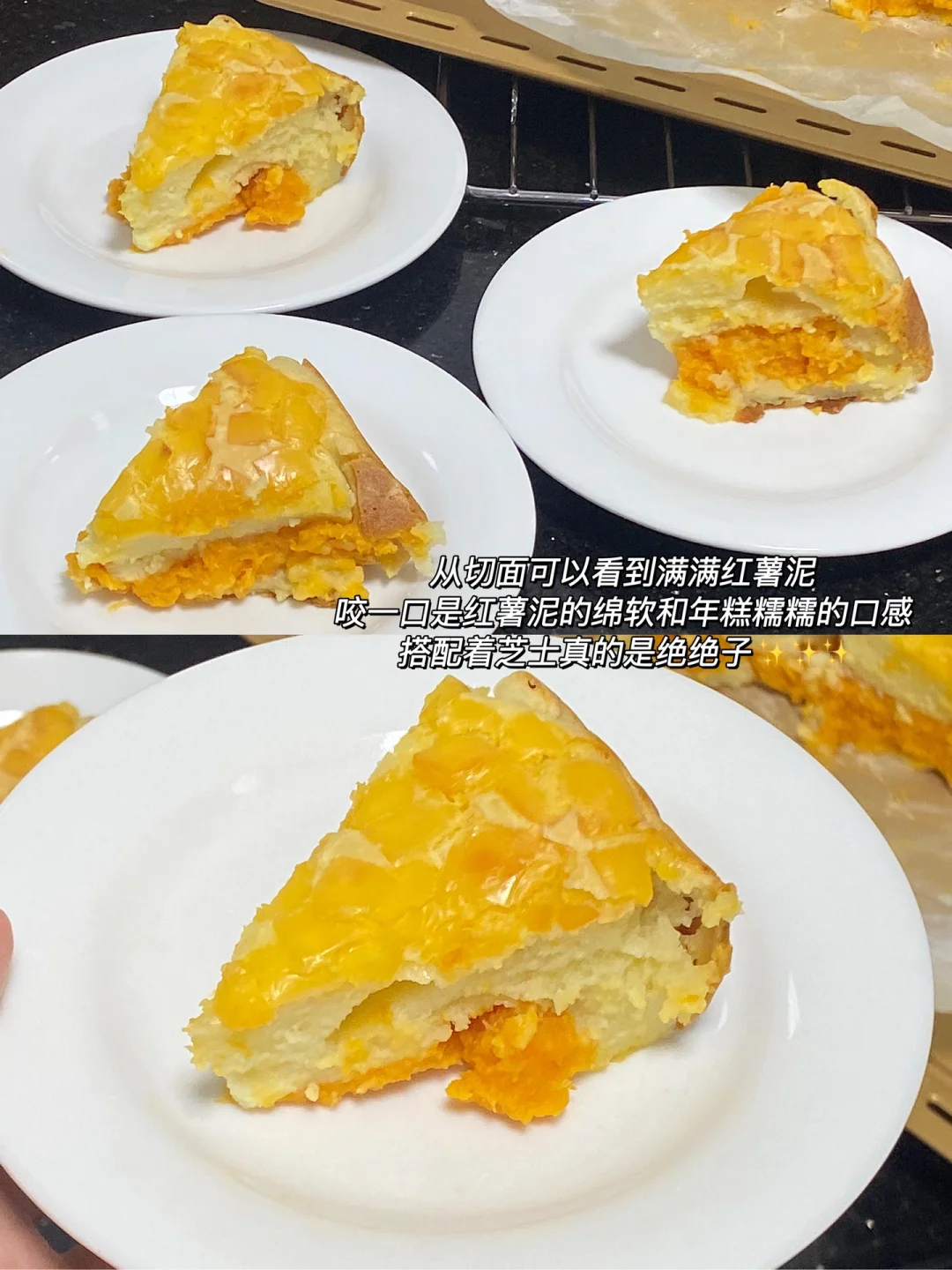 🌷从切面可以看到满满的红薯泥,咬一口是红薯泥的绵软和年糕糯糯的口感,搭配着芝士真的绝绝子[赞R][赞R][赞R]