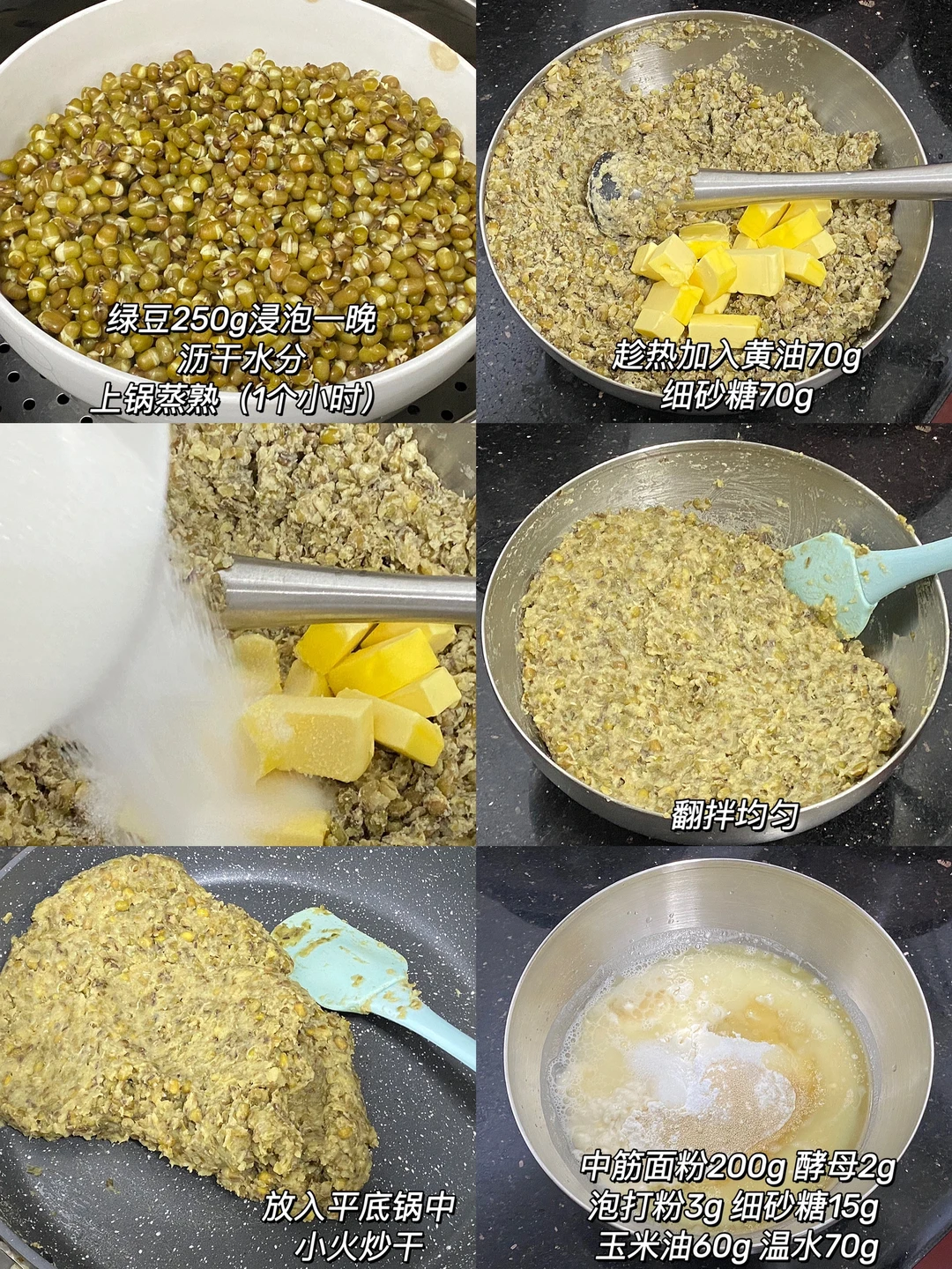 🌷绿豆馅食材:绿豆250g,黄油70g,细砂糖70g。