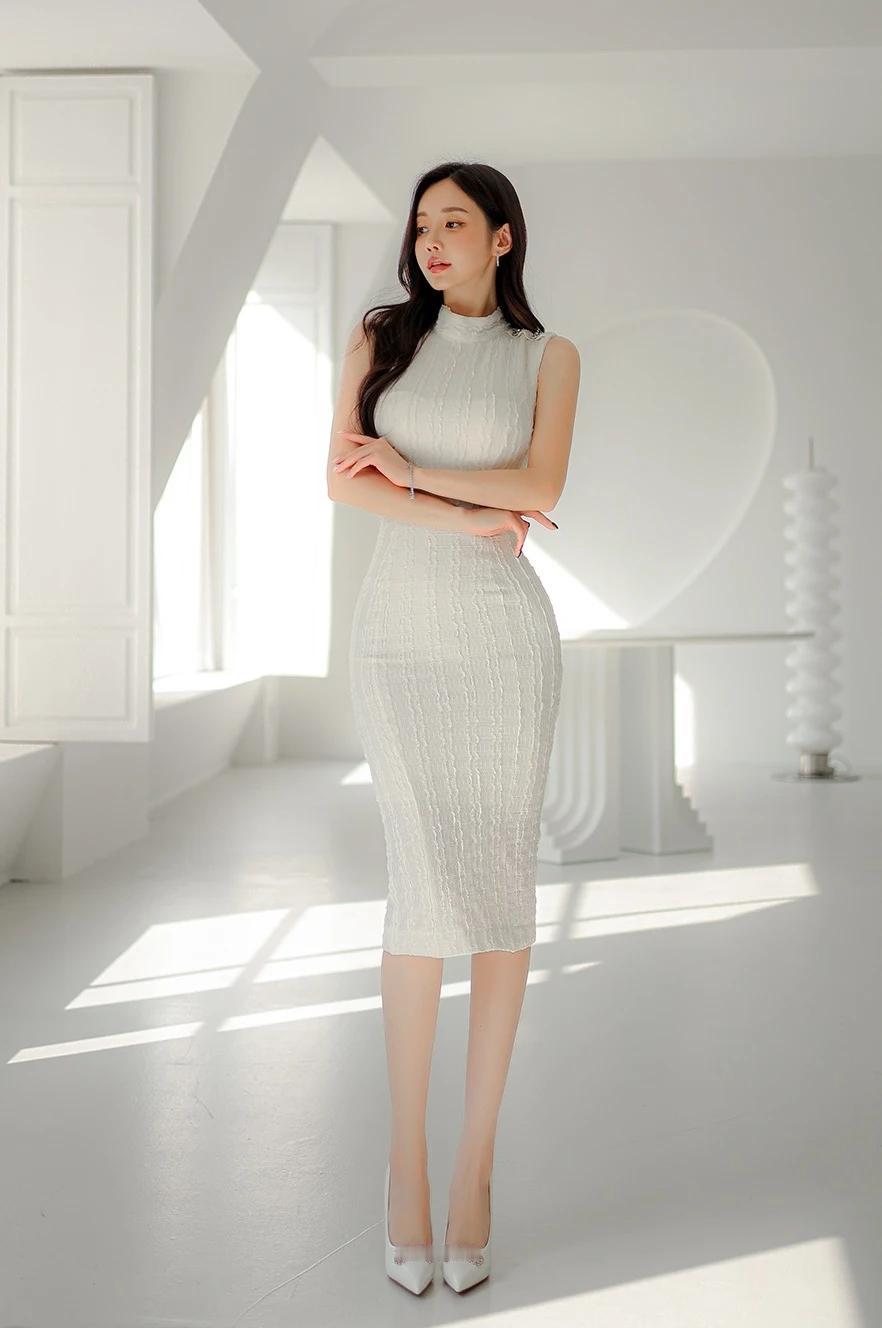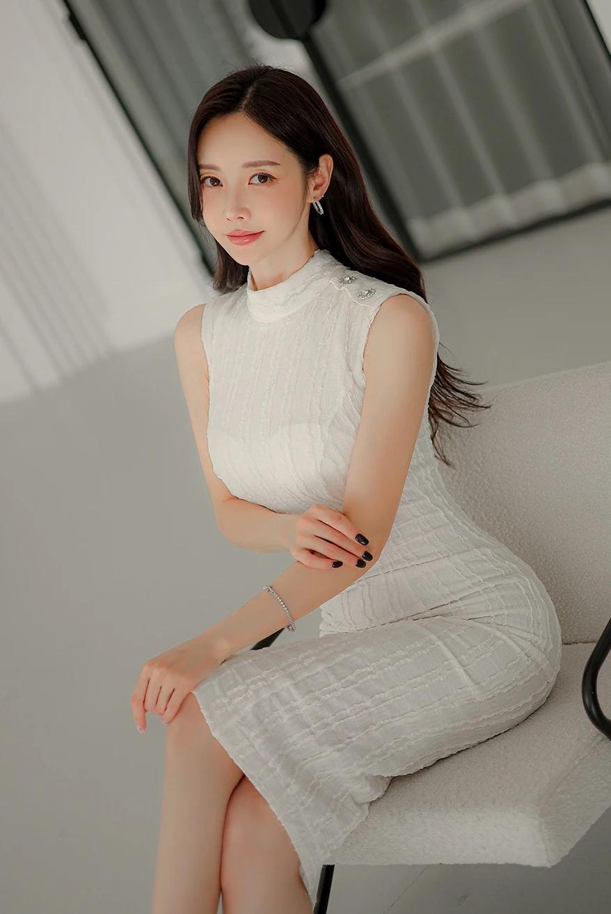 孙允珠-一个穿白色连衣裙的女士站在明亮的房间里。每日摄影分享 简单穿搭好看吗