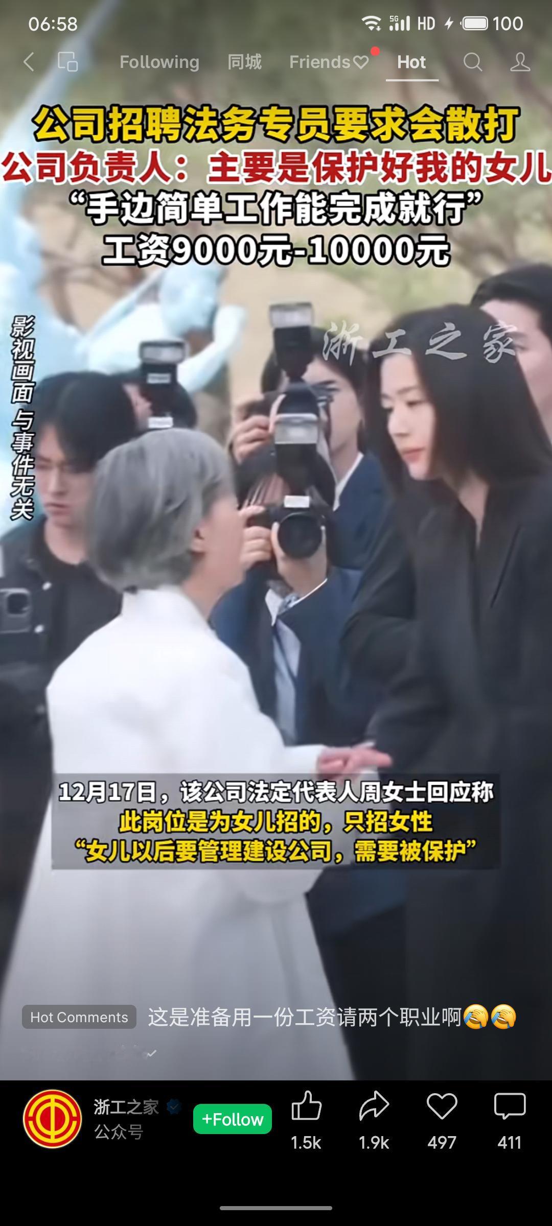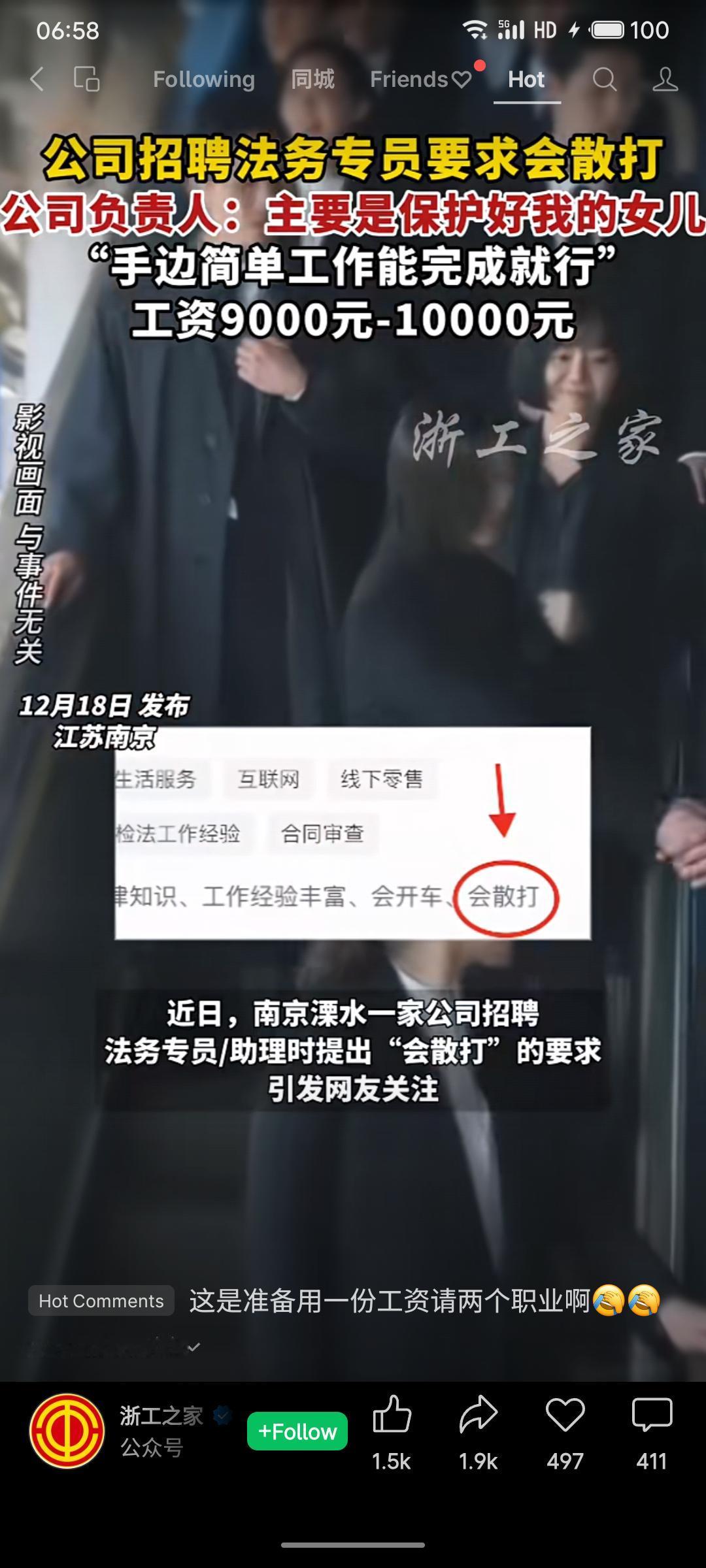 这招聘是“法务保镖二合一体验卡”吧?要求文武双全——左手审合同,右手防身术,主打一个“拿着法务工资,干着贴身护卫的活儿”。老板为女儿操碎心,但一份薪水两份工,网友锐评:不如直接写招“当代木兰”,能文能武还省预算。