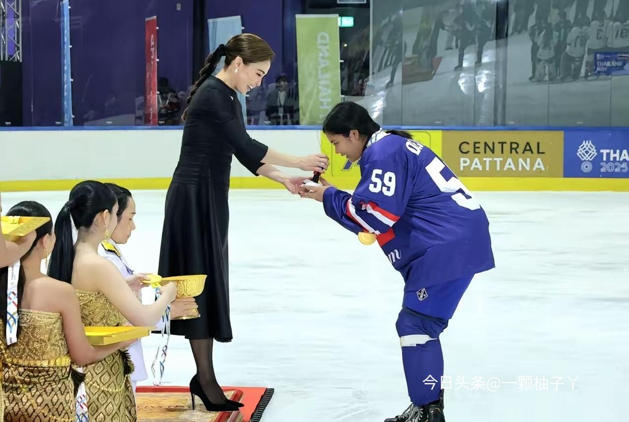 苏提达现身曼谷国际冰球场,打卡东南亚运动会冰球决赛现场——毕竟她还是国际冰联女子冰球全球大使,这主场赛事必须撑场! 这场泰国vs菲律宾的女冰决赛堪称“进球盛宴”,东道主泰国队一路猛冲,最终13-4大胜摘金,菲律宾队虽落败但拿下队史首枚东南亚运动会冰球奖牌,也算是虽败犹荣。苏提达全程看得专注,赛后还亲自给金银铜牌队伍颁奖,笑容温和又端庄,完全没辜负“礼仪教科书”的称号。 有意思的是,这位王后可不是只会当观众,之前还露过冰球功底,防守传球都有模有样。这次从观赛到颁奖全程流程公开,有权威媒体全程记录,只能说“全能王后”的业务范围,真是覆盖体育圈没商量!