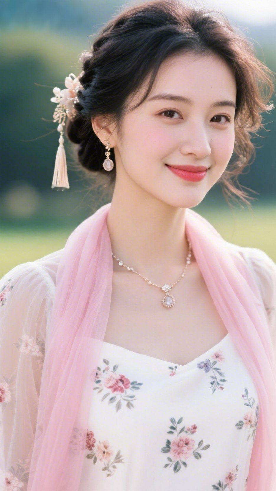 粉纱携香栖春柔 软绿铺就的风里,她着绣花粉纱立在晴光下,发间流苏轻晃,似将春的清甜系在了鬓边。粉巾垂落肩头,衬着裙上花痕,如揉开的花雾轻沾衣摆。 耳坠微光随笑靥轻摇,颈间链坠裹着柔意,并无艳俗之感,是粉与白、纱与花的相和,妥帖得让风都放缓了脚步。她抬眸时,春阳落在纱袖软褶间,连空气都漫开松弛的暖意。 这是春最舒展的模样:从非刻意的娇柔,是粉纱裹着花意,像光栖于云,恰好织就的一场温柔盛放。 春日柔粉穿搭 花漾春光氛围