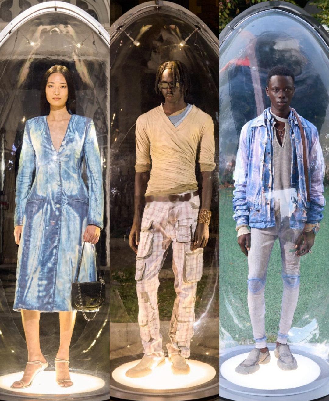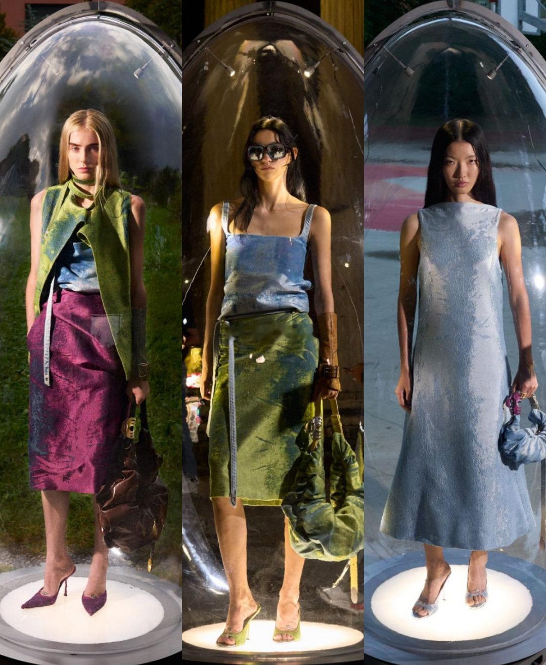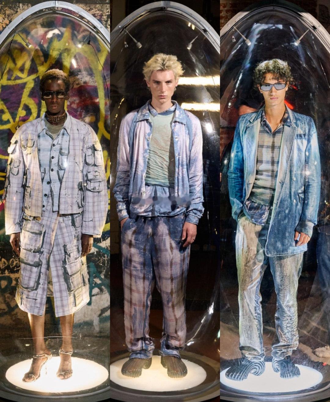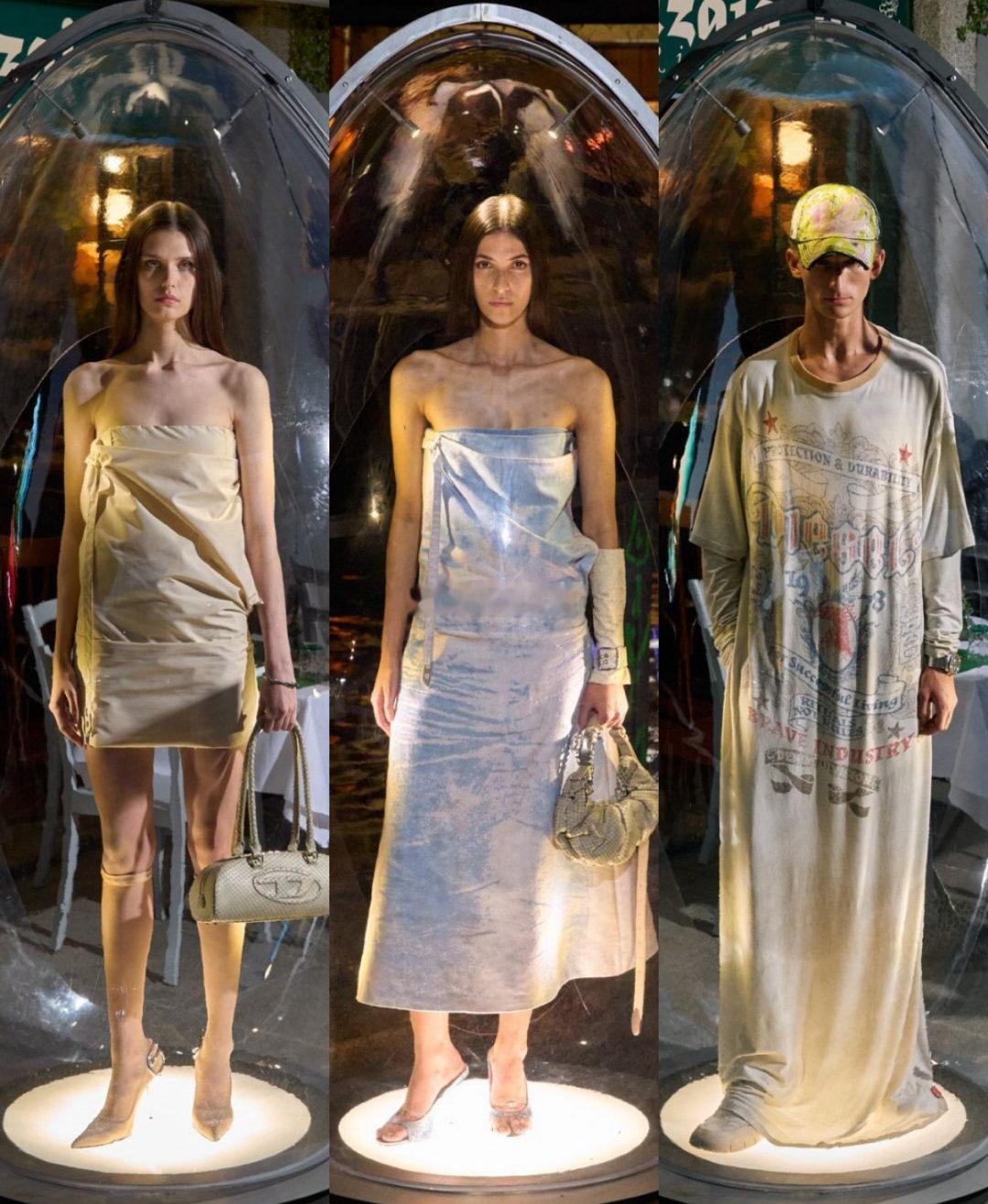 未来暮色 |Diesel's SS26 Diesel2026 春季大秀,以一场全城“寻蛋游戏”开场,却以一整片「未来暮色」染透了整个系列。这一抹来自数字世界的色彩,游走于蓝紫之间,带着清冷的金属光泽,又融合水洗蓝,仿佛为末世傍晚蒙上了一层浪漫的滤镜,它不是单纯的颜色,而是一场氛围,一种情绪。Glenn Martens 在这片暮色中构建出机械与生命感的矛盾美学:1.解构丹宁与再生缎面,经做旧与镭射处理,泛出生物肌理般的光泽2.缠绕裙装与错视针织,在低饱和色调中依然充满张力3.每一套造型都像是一位酷女孩,身披暮色,从废墟中缓缓走来,温柔而叛逆,脆弱且坚韧「未来暮色」作为2025年度流行色,早已超越色彩本身。它凝萃着AI、元宇宙与太空探索的数字美学,承载我们对未知的浪漫想象。无论是在极简大衣、精裁西装,或是流动连衣裙上,这一抹色调都为服装注入了静谧而强大的未来感。玩转未来暮色 可以尝试以下配色组合:1. 未来暮色 + 中性色(白/灰/米/黑):最安全高级的方案,能衬托出“未来暮色”的质感。2.未来暮色 + 大地色系(卡其/咖色/燕麦色):营造温暖、质朴且富有层次的自然感,非常秋冬。3.未来暮色 + 同色系/邻近色(不同深浅的蓝/紫/灰):打造和谐而有深度的单色造型,凸显搭配功力。4.未来暮色 + 小面积点缀亮色(橙红/明黄/酸绿):注入活力与先锋感,秀场常用此法提亮。未来暮色风格大赏2025年色彩记忆