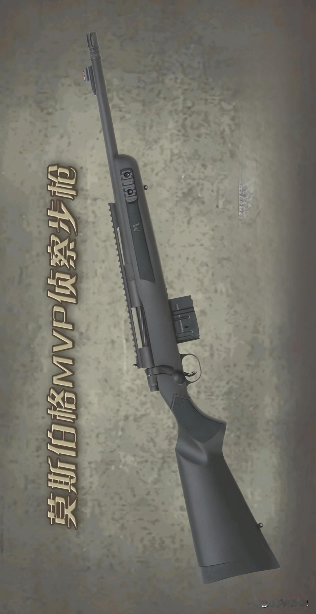 莫斯伯格MVP侦察步枪 莫斯伯格新款MVP侦察步枪,是MVP巡逻步枪的升级款,主要卖给军警部门。 它比老款多了不少实用设计:机匣顶的导轨加长了,装瞄准镜更稳当;缺口照门换成觇孔的,还挪到导轨后面,准星是红色氚光的,看得清楚。 护木两边各加了一小段导轨,能装手电、激光灯;枪口换了消焰器,开枪时枪口不怎么跳。 这枪还是旋转后拉枪机,拉机柄是圆的,好操作。 枪管413毫米,打7.62×51毫米北约弹,扳机力能调,14到32牛都行,不管是新手还是老手都能适应。
