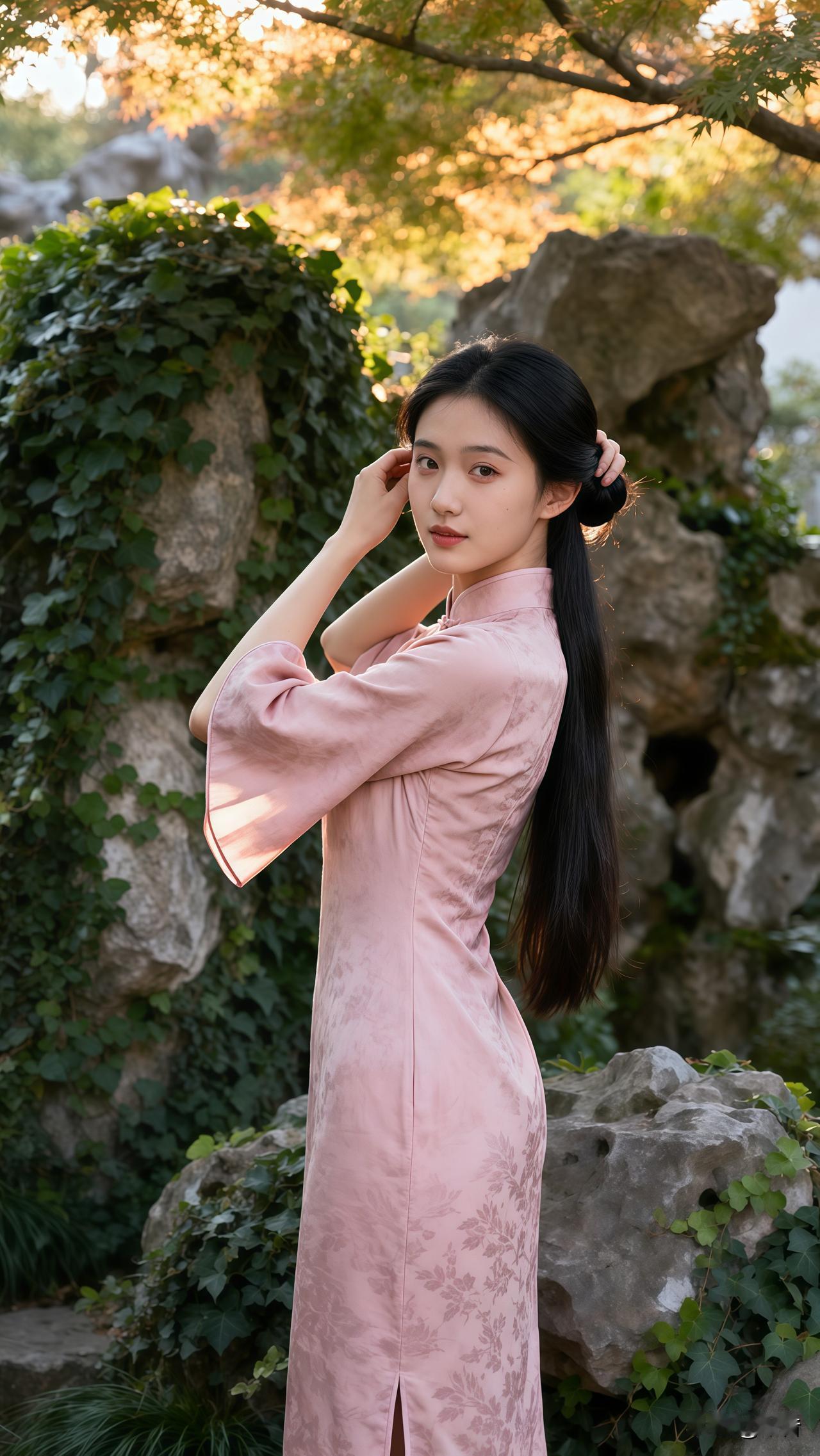 这身穿搭和景致,能打几分? 柔光、微风、摇曳生姿 把东方温婉刻进骨子