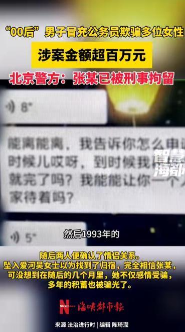 “00后又出人才了!”北京,一24岁男子,伪装成1993年生人,打车到机关单位附近,然后让4名30多岁女子接他下班,冒充公务员,骗了100万左右。网友:我的天呐,这要假装在联合国门口下班,能骗到高市早苗! 近日,北京一起以“冒充公务员谈恋爱”为手段的诈骗案件引发关注,年仅24岁的杨先生(化名),通过精心包装身份和长期情感铺垫,先后从多名女子手中骗取钱财,涉案金额约百万元。 警方调查显示,杨先生实际是一名00后却对外谎称自己是九三年生的人,并刻意把自己塑造成“体制内离异男”,为了让谎言看起来更真实,他经常打车前往机关单位附近,在固定时间上下车,再让几名三十多岁的女性“接他下班”,营造出稳定上班、有人际圈的假象。 吴女士(化名)正是其中一名受害者,通过社交平台与杨先生认识,两人聊天频繁,杨先生言谈成熟稳重,自称在机关单位工作,经济稳定,但因感情不顺已离异,吴女士觉得对方条件踏实可靠,年龄相仿,又有正式工作,逐渐放下戒备,答应与其交往。 交往期间,杨先生以各种理由向吴女士借钱,从生活周转、投资机会,到所谓“内部项目垫资”,每一次金额都不算夸张,却次数频繁,出于信任,吴女士陆续转账,直到积蓄几乎被掏空,其间,杨先生始终表现得“有还款计划”,不断用承诺稳住吴女士。 真正让吴女士起疑的,是一次无意中的发现,她看到杨先生的社保卡信息显示出生年份为2001年,与其自述的1993年严重不符,吴女士这才意识到,自己可能从一开始就陷入了精心设计的骗局,随后,她冷静收集聊天记录、转账凭证,并第一时间向当地警方报案。 警方介入调查后发现,杨先生并非只针对吴女士一人,而是同时与多名女性保持联系,利用相似话术实施诈骗,目前,杨先生已被警方控制,案件正在进一步侦办中。 事件曝光后,网友纷纷留言讨论,有网友感叹情感诈骗往往披着“认真交往”的外衣,最容易让人放松警惕,也有人提醒,在涉及金钱往来时,无论关系多亲密,都应保持基本核实和理性判断。 这起案件再次提醒公众,身份包装和情感操控已成为部分诈骗的常见手段,感情可以真诚,但信任不能盲目,一旦涉及财务问题,更需要保持清醒和边界。 信息来源:海峡都市报