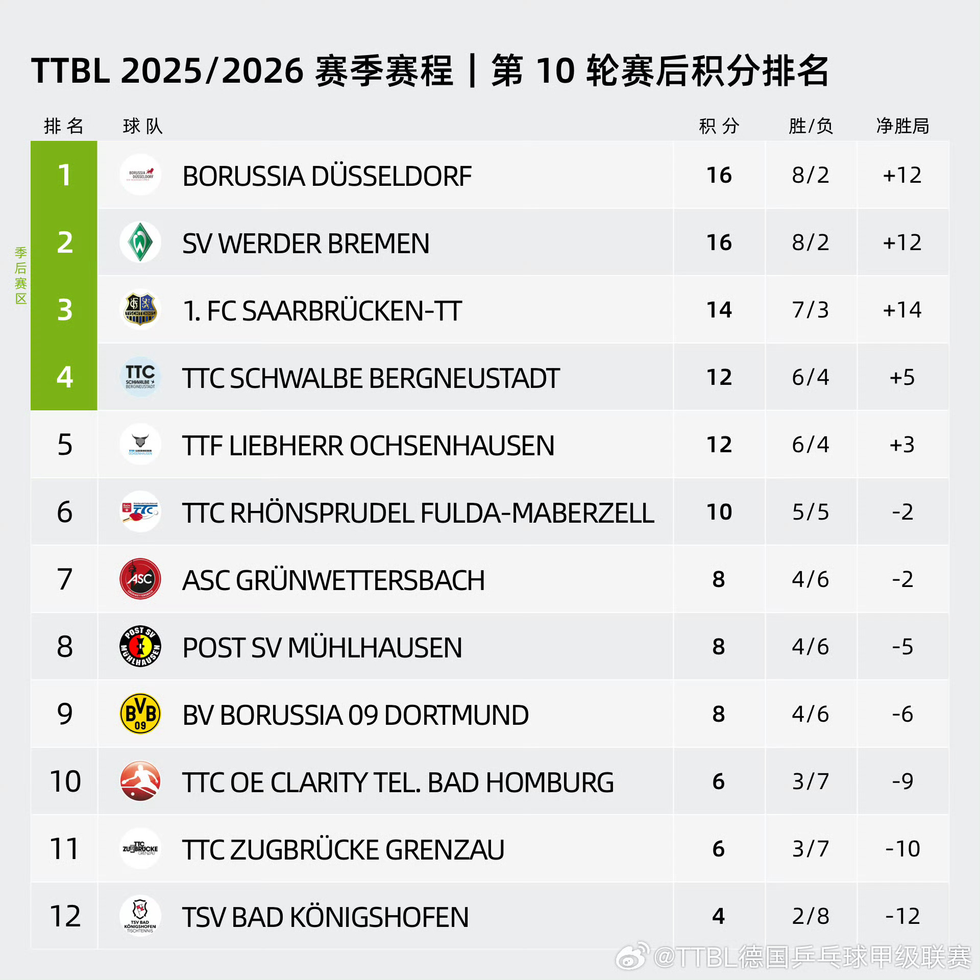 樊振东所在俱乐部暂排德甲第三据TTBL德国乒乓球甲级联赛官微,樊振东所在的萨尔布吕肯俱乐部第10轮赛后积分排名第三热搜多元内容创作计划全网热点共创计划