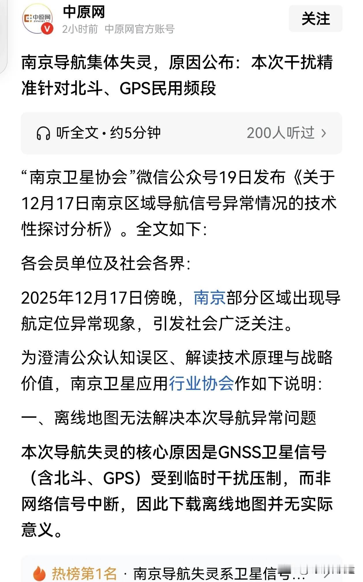 南京导航被干扰之事,有很强的战略意义! 此次发生的导航受干扰之事,许多导航用户发现定位不准 漂移 给导航用户带来了很大的麻烦,这说明了技术性干扰的实质意义。而此次受干扰的频段 是民用北斗与 GPS 相 同频段受影响,而军方的北斗频段稳如泰山! 想想看,如果这种技术性的干扰将来用于国家战略,特别是用于国家统一 及外来势力介入的话,相信不单台湾军方的导弹 飞机偏离方向,也以美国及日本所依赖的 GPS 导航也是有同样的效应的。真到“战”的 那一天,美日战机 导弹 等所有依赖 GPS 导航的军事装备均“无法定位”。这样的"战"根本就无法发起,而更有可能美日“自己打自己”。 所以在未来信息战特别依赖 GPS 所有的军事装备 在技术性干扰之下,会导致台湾的通信系瘫痪状态,更如用信息技术进行压制 封锁 隔离 ,这是解放台湾核心的信息化作战! 而事实证明 中国军方的北斗信号根本无影响,表明自主创新的导航军用技术是稳定的 ,而北斗系统信号下的无人机 战机 军舰 的通信导航定位信号已经是十分的强大了,优越于世界! 据网络上的报道,如今美国空军一号也在接入中国的北斗信号 在特殊空域内,这表明以美国为主导的 GPS 全球覆盖能力有空缺 信号受干扰严重,所以美国空军一号在特殊空域接下中国的北斗导航 说明了中国的北斗优越性!
