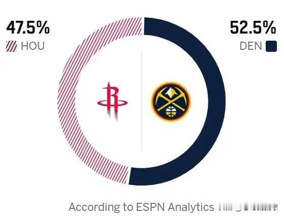 ESPN真是太不尊重火箭了!明天NBA将会迎来一场强强对话,火箭将会在客场挑战掘金,值得注意的是,今天ESPN特意为明天这场焦点战进行了一番预测,结果火箭被ESPN看衰了,火箭赢球的概率为47.5%。 在我看来,只要火箭能够限制住掘金双星约基奇和穆雷,那么火箭一定能够赢下比赛。对于明天这场比赛,申京和阿门-汤普森将会成为火箭赢球的关键,因为他们需要防守约基奇和穆雷。