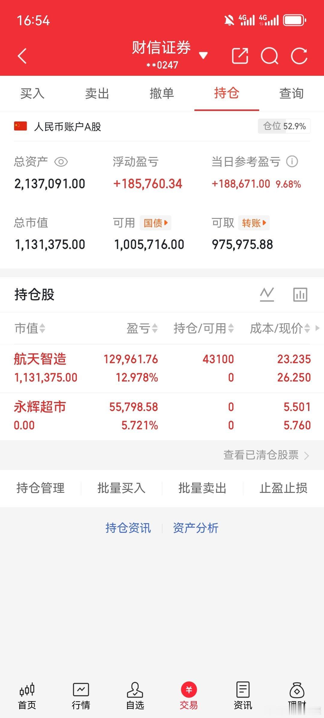 12月19日持仓:开盘买入航天制造卖出永辉超市!特别声明:本内容为个人实盘记录,不构成投资建议,更不鼓励跟买!股市有风险,投资请理性 ! !!仅个人记录无不良引导 点赞评论是对我分享的最大支持,关注我,时间会给你最真实的答案!!!