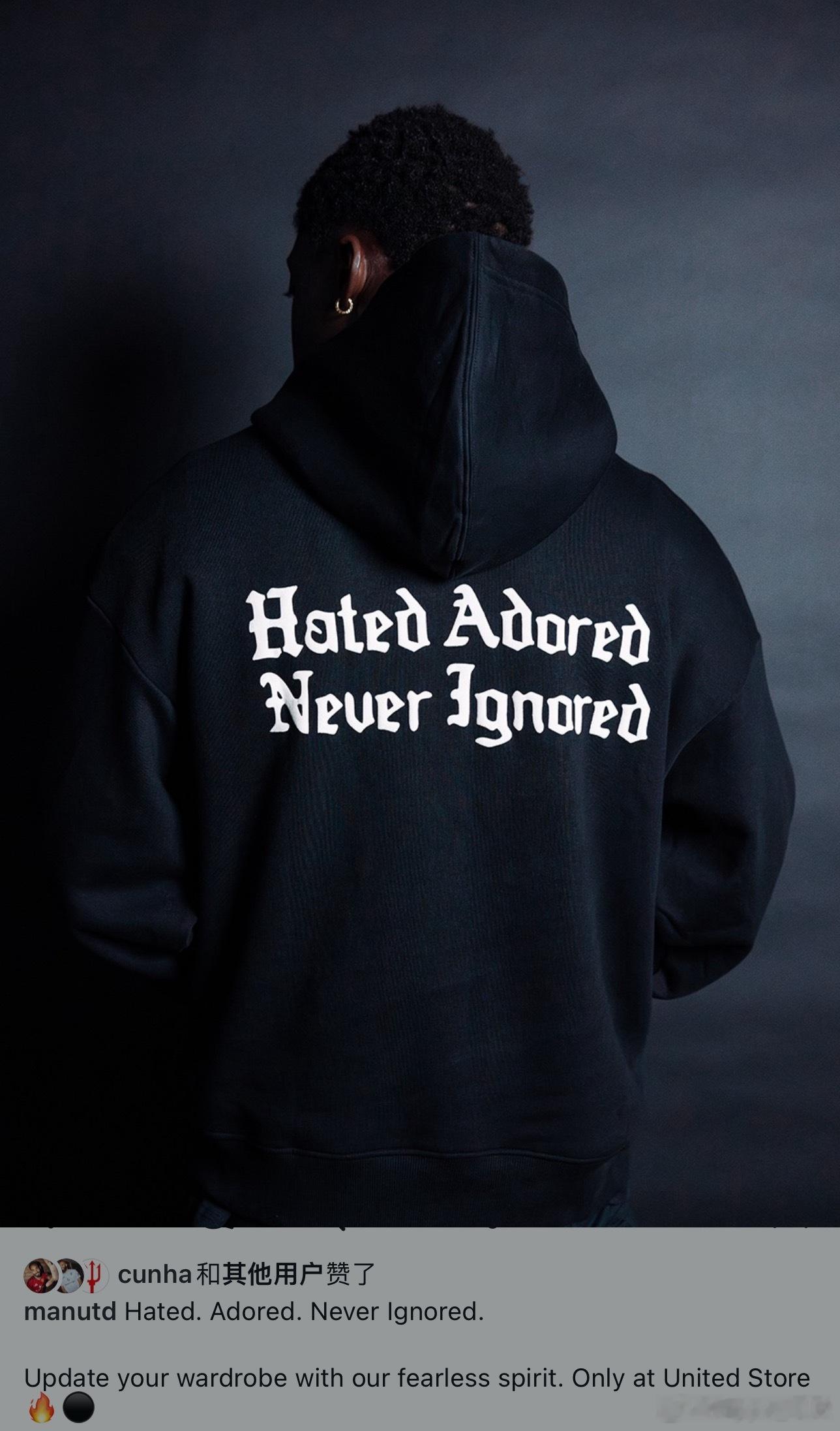 曼联这个系列的衣服挺街头,有点好看。虽然我不懂英文不知道后面写了什么,但这个字体写出来感觉很有文化的样子。 唯一可惜就是帽衫卖完了。