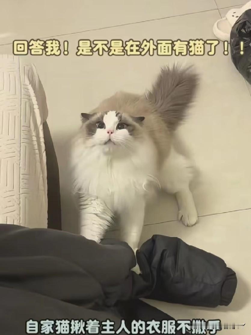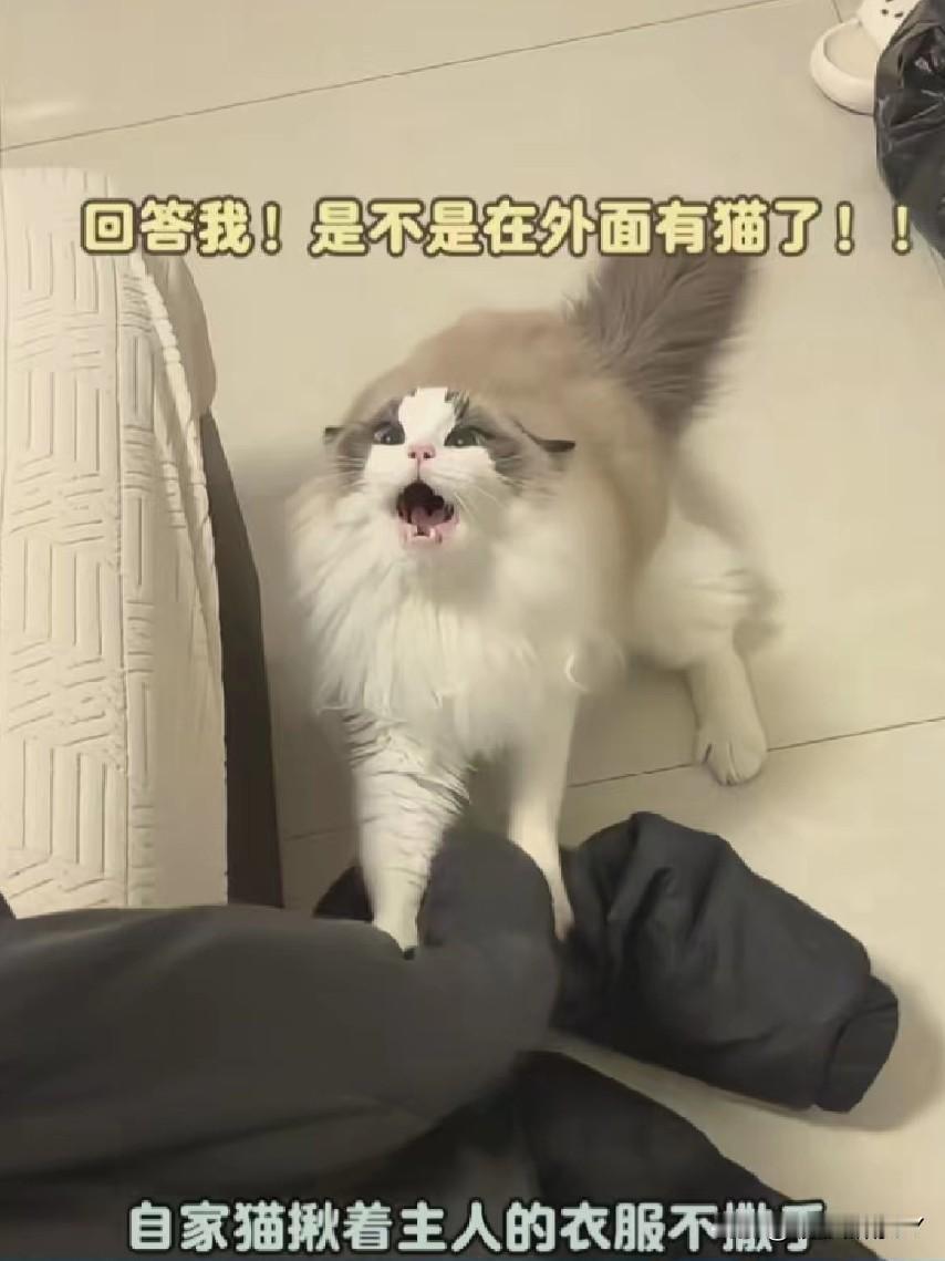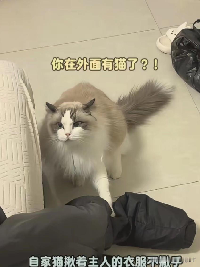 主人摸了流浪猫后没洗手就回了家,自家的布偶猫挡在门口当场就炸了毛,紧紧揪着主人的衣服不撒手,嘴里发出呜呜声…… 那一声声猫叫,满是质问:“喵~你在外面有别的猫了?哪只才是那个不要脸的野猫?”它那委屈又愤怒的小模样,像极了恋爱中患得患失的我们。 它气呼呼地喊出“爱是会消失的”,最后,即便主人拿出了5个猫条,也没能哄好它。 这也暴露了它吃货的本质,也展现出它强烈的占有欲和这傲娇的小脾气,将宠物的依赖与忠义演绎得淋漓尽致。 原来,不管是人还是猫,在爱里都会变成醋坛子~这份纯粹的在意,谁看了不觉得又憨又萌呢! 布偶猫 创作训练营2期开营啦