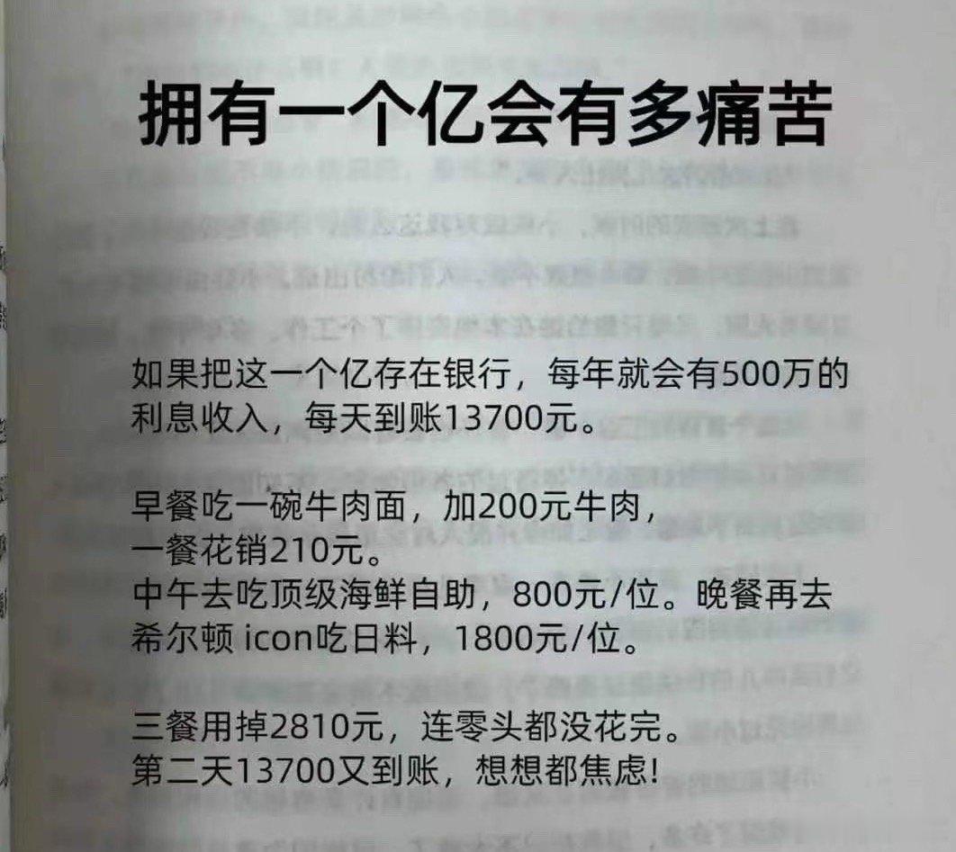 每天精打细算,工资到手,房贷、日常开销一扣,钱包瞬间“瘦身”。幻想过无数次中五百万大奖,可彩票的最高战绩是五块。每年的年终奖都默默献给了提前还贷,账户里的数字总是原地踏步。看到别人“有钱到不知所措”,我第一想法是:“老天爷,请让我也尝尝这种‘苦’吧!” 心里幻想过无数次,如果真有钱了,一定要再买套房,给未来多一份安全感。但我知道,这种“天降横财”的剧本,这辈子大概率是等不到了。算了,还是先定个小目标:希望下个月的工资,能在还完贷后,让我体会一次“有钱到不知怎么花”的、哪怕只有几小时的奢侈烦恼。