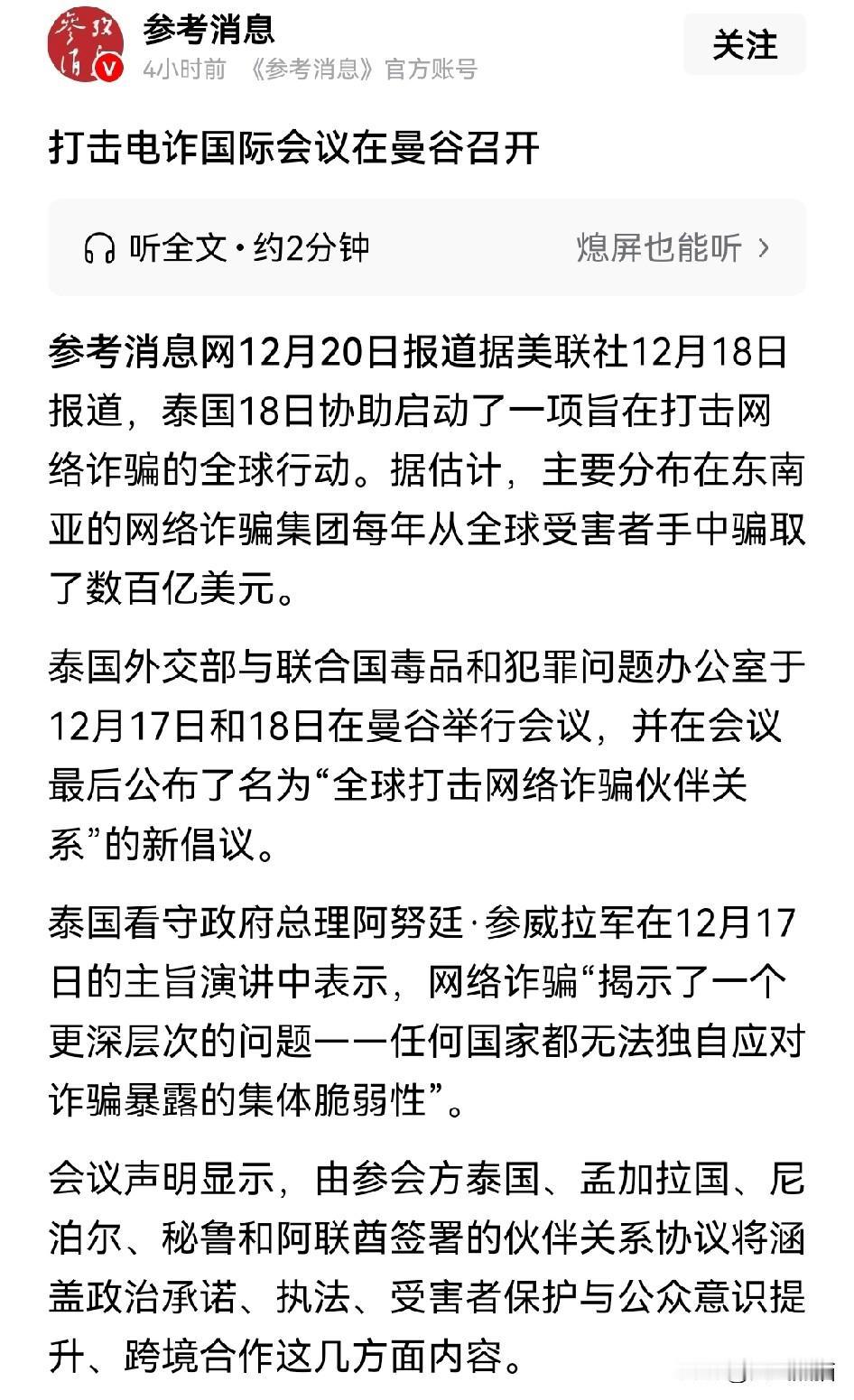 泰国这一波赚麻了! 12月17日,泰国方面召开了国际打击网络诈骗联盟的会议,旨在打击跨国电信诈骗犯罪的讨论。 这次吸引了包括中国、越南、老挝等58个国家参加,当然,柬埔寨方面并没有派出代表。 可以说这一招真的是妙,结合泰国和柬埔寨两个国家的冲突,很明显的把自己推向了正义的一面,而包括周边以及其他地区这么多的国家参加,也说明了对这样的做法肯定。