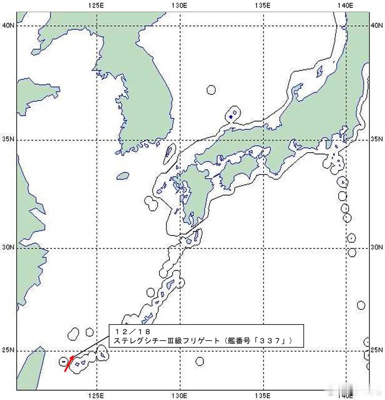 日本自卫队统合幕僚监部12月19日发布公告称,日本海上自卫队于12月18日下午3时许,在冲绳县与那国岛以南约120公里海域,确认到俄罗斯海军20385型护卫舰(舷号337)向东北航行,该舰随后穿越与那国岛和西表岛之间水域向东北航行,前往中国东海方向。