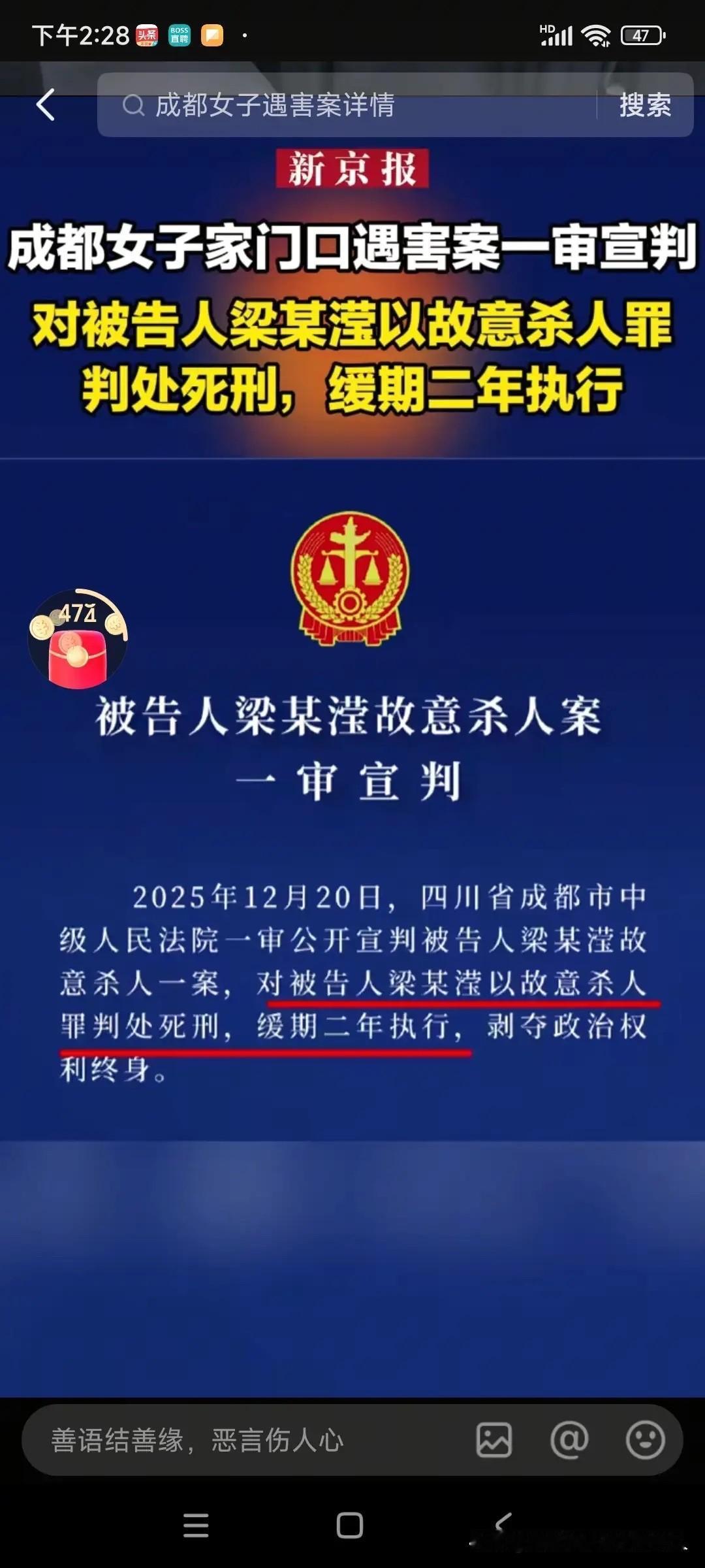 王紫雅案件一审宣判,凶手被判处死刑缓期二年执行。紫雅妈妈表示,会把这个结果告诉女儿,并且会坚持抗诉到底。臧梵清律师也明确表态,会一直陪着紫雅妈妈维权。 大家心里都清楚,死缓大概率服刑二十多年就能出来,凶手届时也就六十岁左右。这样的结果,任谁看了都替紫雅妈妈揪心。她失去了女儿,苦苦追寻的公道,距离心里的期待还差得太远。 法律的意义本就是惩恶扬善、慰藉受害者家属,紫雅妈妈的抗诉,既是为女儿讨说法,也是在捍卫内心的正义。希望后续的司法程序能充分倾听她的诉求,还受害者一个公正的交代。