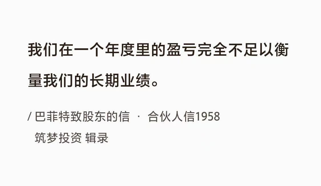 巴菲特曰:“我们在一个年度里的盈亏完全不足以衡量我们的长期业绩。” 股市投资并不是一个线性增长或减少的地方。 在大多数时间里,股市就像个老黄牛,慢悠悠地上涨或下跌。有时也会盘整,在某个指数点位来回反复横跳。而在少数时间里,它才会猛涨猛跌。 这意味着,在很多时候,我们的账户都会表现平平。赚时赚不了多少,亏时也亏不到哪里去。而在少数时候,它才会起伏很大,赚的很多或亏的很多。 所以,用一年的盈亏来衡量投资能力,并看不出什么来。某年赚了很多,并不能说明投资能力很强,可能只是运气使然。而某年亏了很多,也不能说明投资能力薄弱。 衡量投资业绩,至少要用三年的成绩来说话。实际上,三年都显得太短,五年马马虎虎,最好的是股市走完一轮牛熊市的时间。在中国A股,一轮牛熊大致是“七年”。