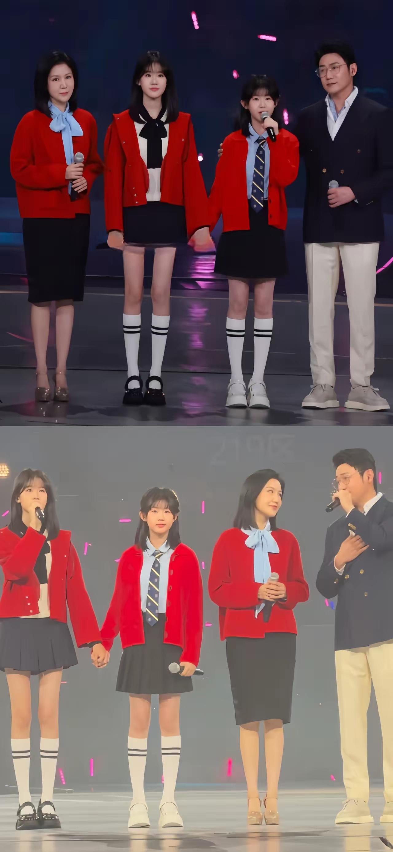 陆毅一家同台合唱《萱草花》这段,直接把“家庭氛围感”焊在了热搜上。镜头扫过去,一家四口全是巴掌脸,站成一排时,那齐刷刷的大长腿晃得人眼晕——鲍蕾的细直腿就不说了,连两个女儿都遗传了这基因,17岁的贝儿往那一站,170+的身高配着清汤寡水的白裙子,亭亭玉立的样子,活脱脱从漫画里走出来的。 最绝的是合唱时的默契,贝儿一开口,声音清得像山泉水,陆毅和鲍蕾在旁边和声,没一句跑调,连呼吸都踩在同一个拍子上。网友扒出旧照,才发现这家人十年前就是这样:陆毅牵着女儿走机场,仨人的腿长能连成一条直线;鲍蕾带娃逛公园,母女仨的背影能被误认成姐妹团。 评论区里吵翻了,有人说“陆毅以后怕是要天天守着家门”,毕竟贝儿这颜值身高,加上那汪清澈的大眼睛,以后出门估计少不了被“黄毛小子”搭讪。但更多人在羡慕这种状态——不是刻意凹出来的“完美家庭”,是站在那就能看出的亲厚,唱歌时陆毅偷偷给贝儿递眼神的小动作,鲍蕾笑着拍他手背的瞬间,比任何剧本都动人。 说到底,大家爱看的从来不是“完美人设”,而是这种藏在细节里的真实。陆毅一家没靠炒作,就凭一首歌、几个自然互动,让全网喊着“又相信家庭美好了”,这大概就是最好的“圈粉密码”吧。